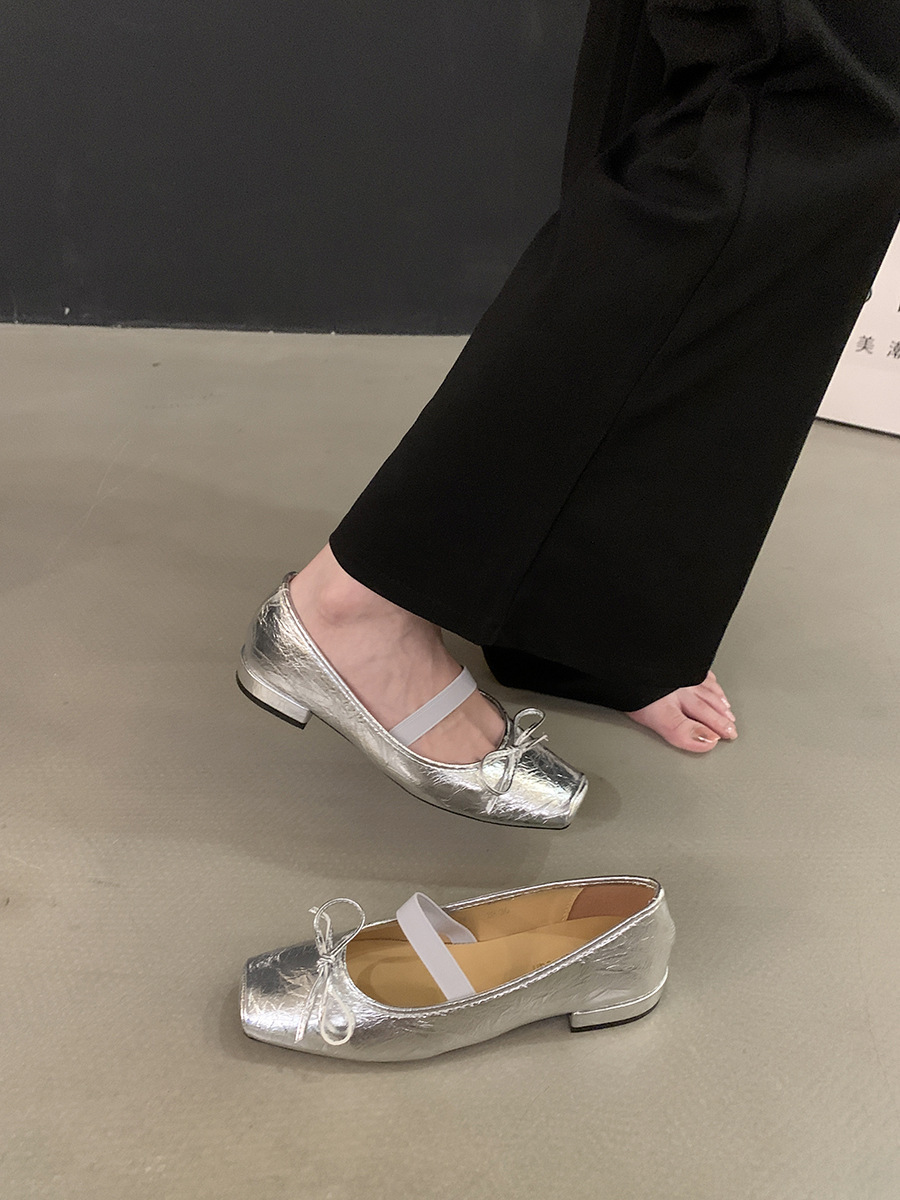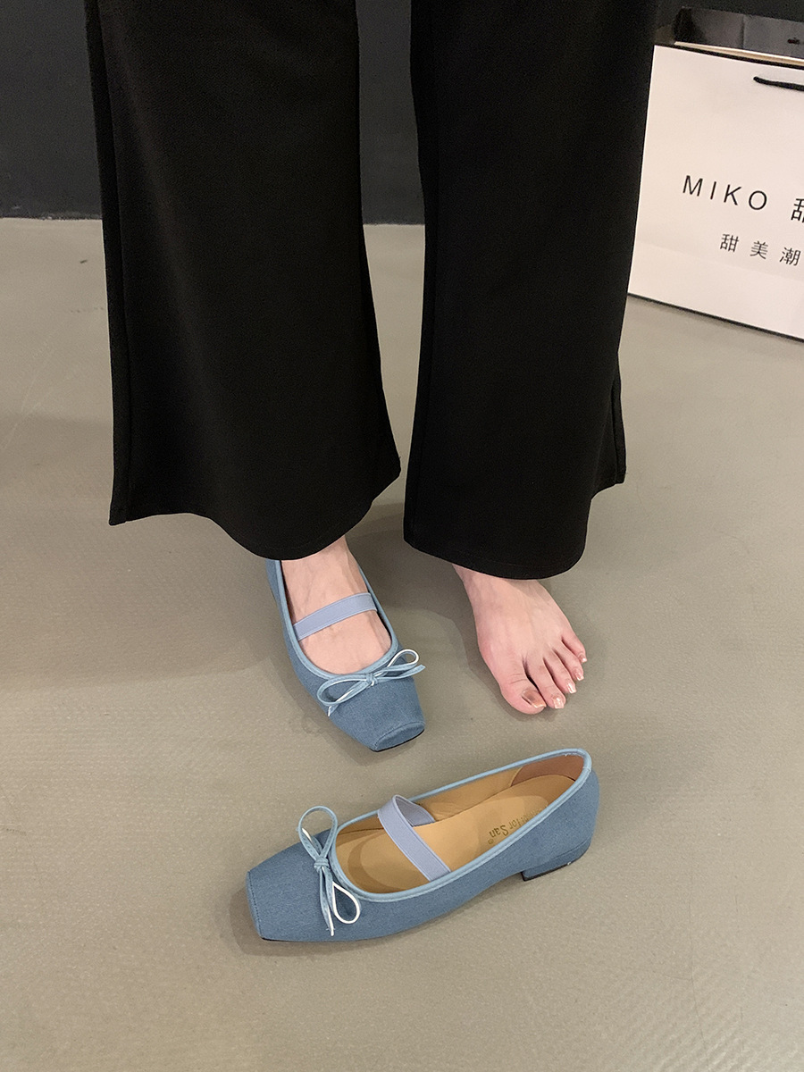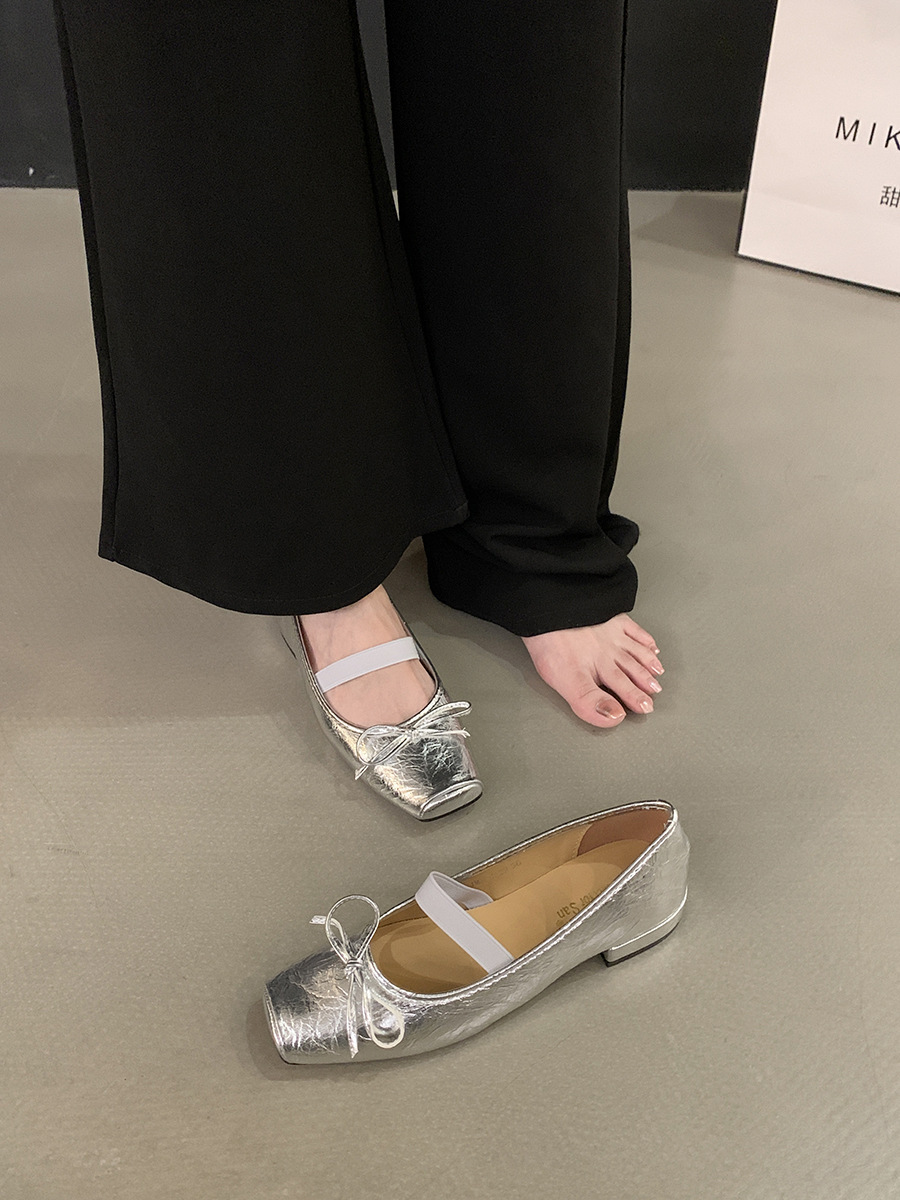 프랑스 레트로 메리 제인 신발 여성 신발 2024 새로운 여름 광장 발가락 얕은 활 요정 스타일 신발스토어 가기