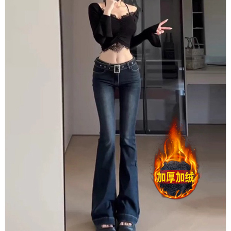 다크 블루 낮은 허리 슬림 핏 핫 걸 달콤한 스타일 마이크로 플레어 청바지 여성용 슬림 룩 키가 큰 긴 바지스토어 가기
