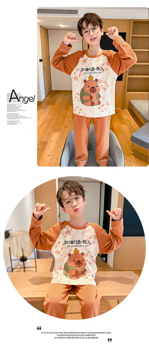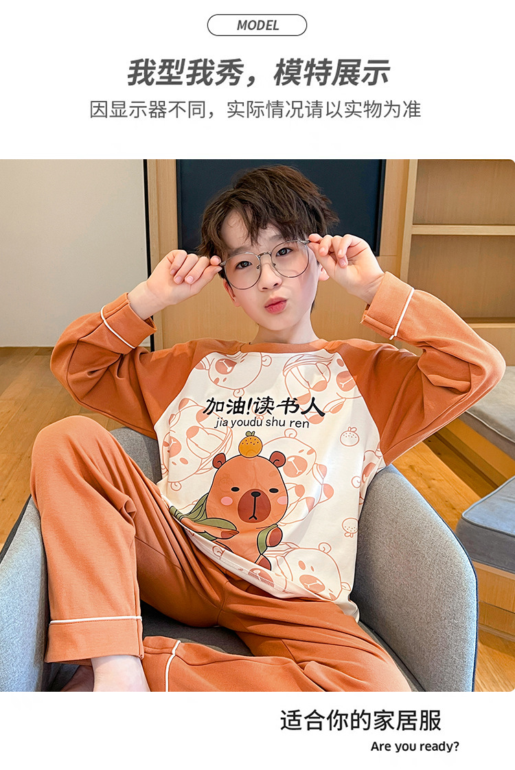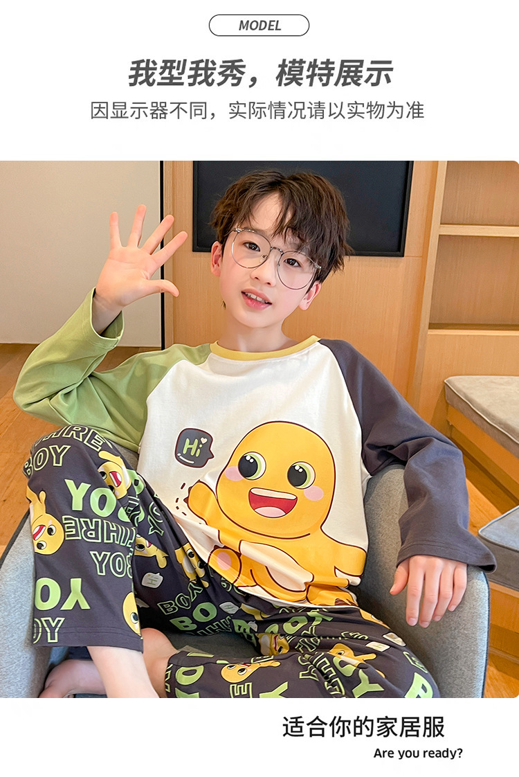 가을 2025 년 새 소년 잠옷 봄과 가을 긴 소매 중대형 어린이 작은 소년 아기 세트 어린이 집 옷스토어 가기