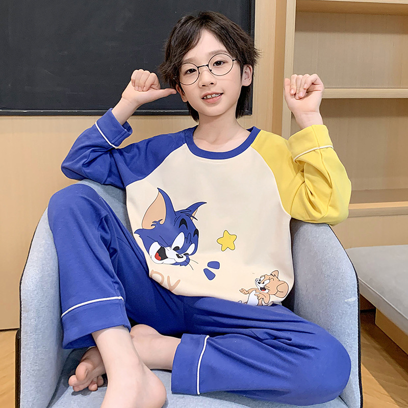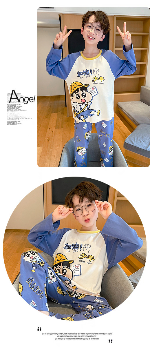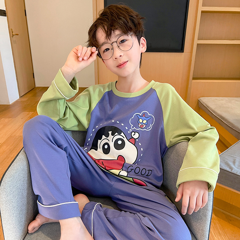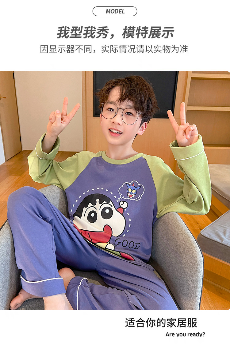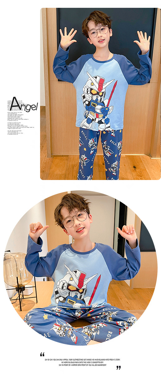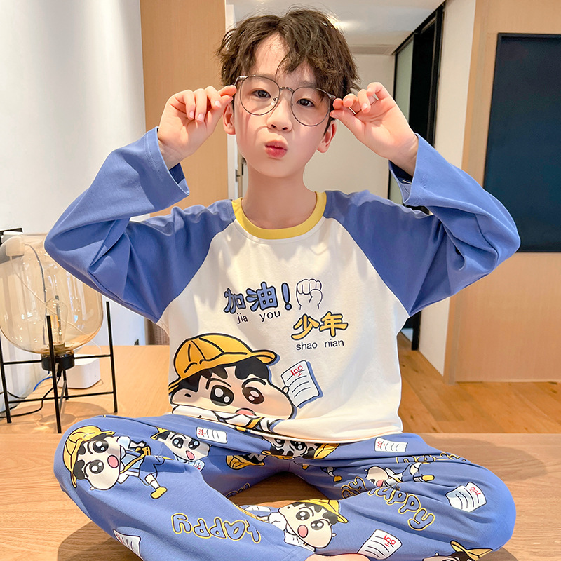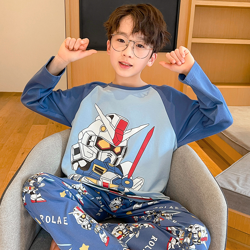 가을 2025 년 새 소년 잠옷 봄과 가을 긴 소매 중대형 어린이 작은 소년 아기 세트 어린이 집 옷