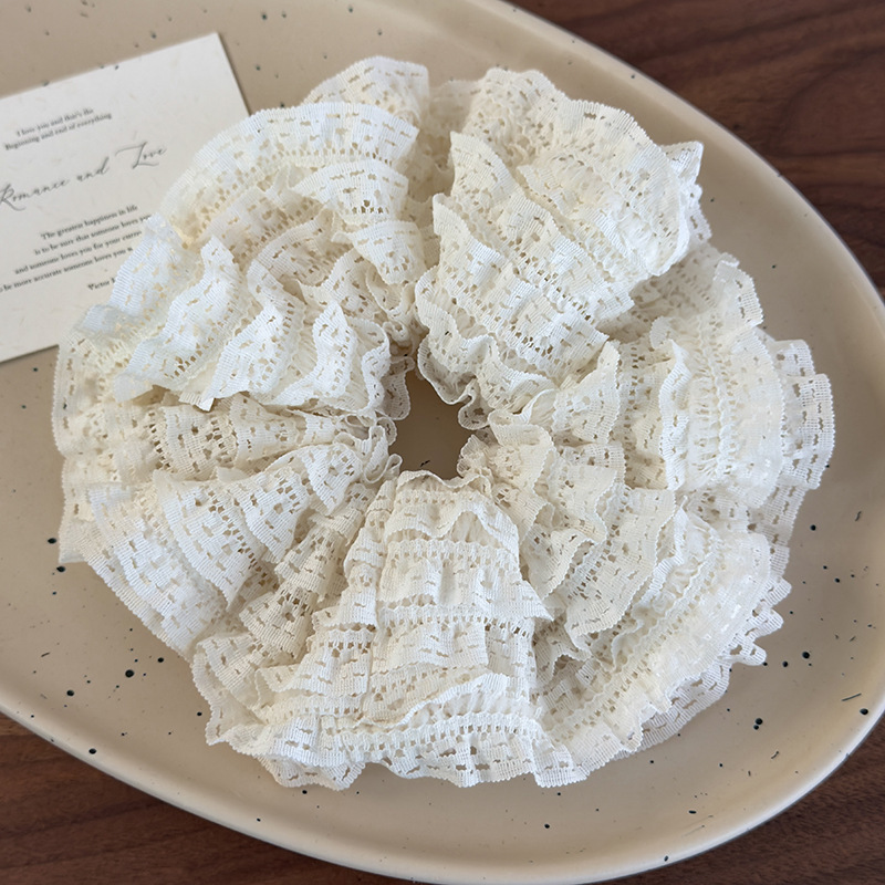 고급 감각 푹신한 레이스 가장자리 대장 헤어 링 볼 머리 말꼬리 헤어 링 스티칭 레이어 느낌 소녀의 머리 로프 헤어 로프