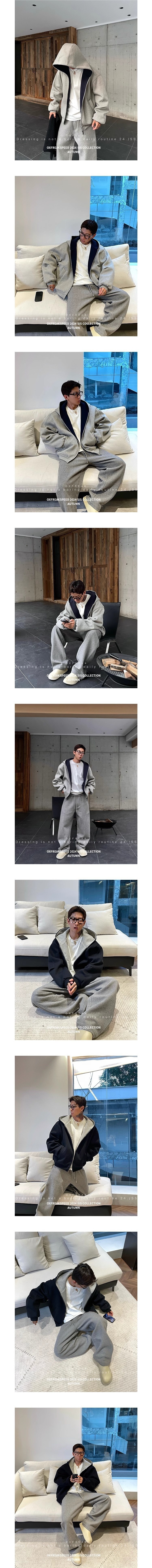 틈새 더블 지퍼 짧은 후드 카디건 스웨터 남성 봄과 가을 2024 새로운 느슨한 트렌드 캐주얼 도매스토어 가기