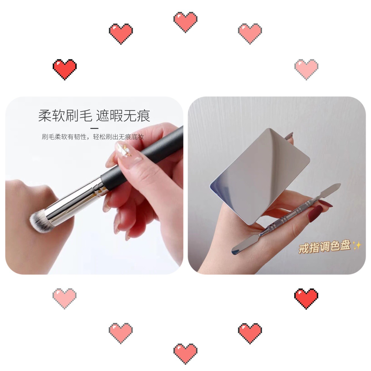 • 3종 세트 (대형 링 + 일자형 파운데이션 브러쉬 + 컬러 팔레트)