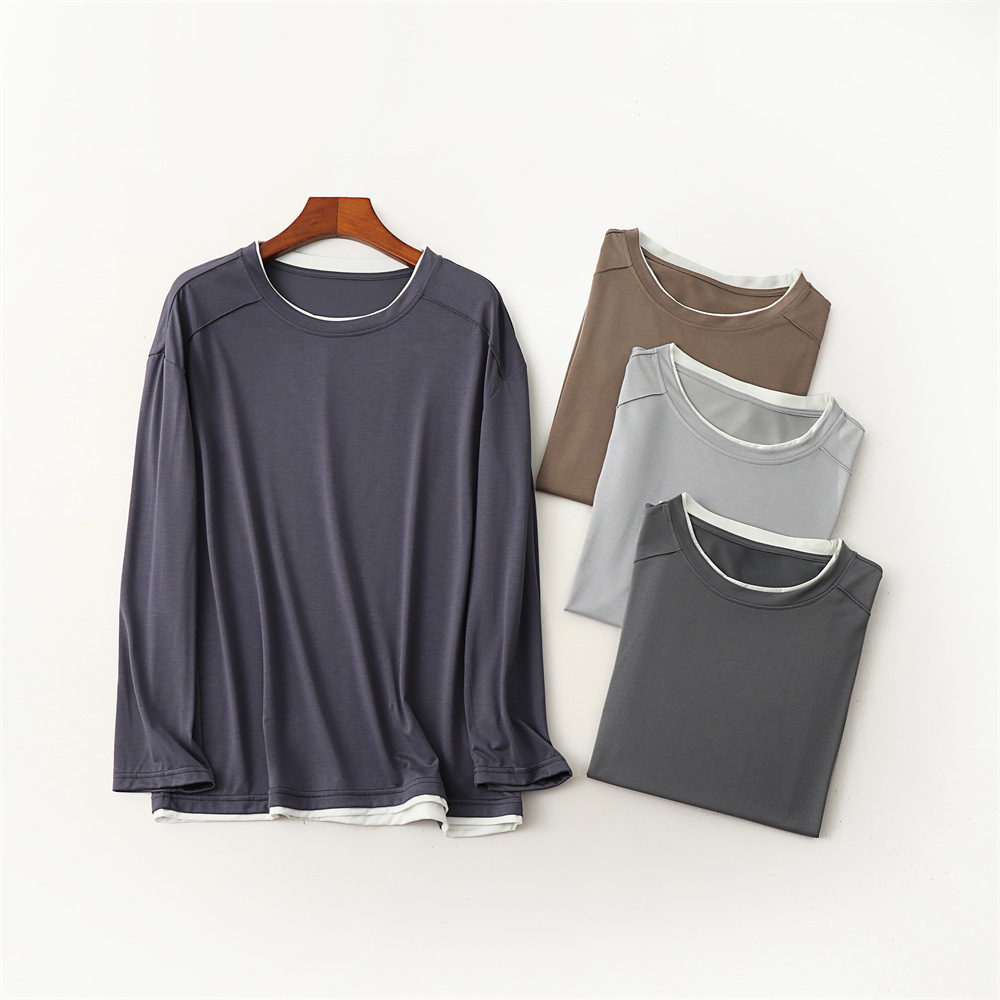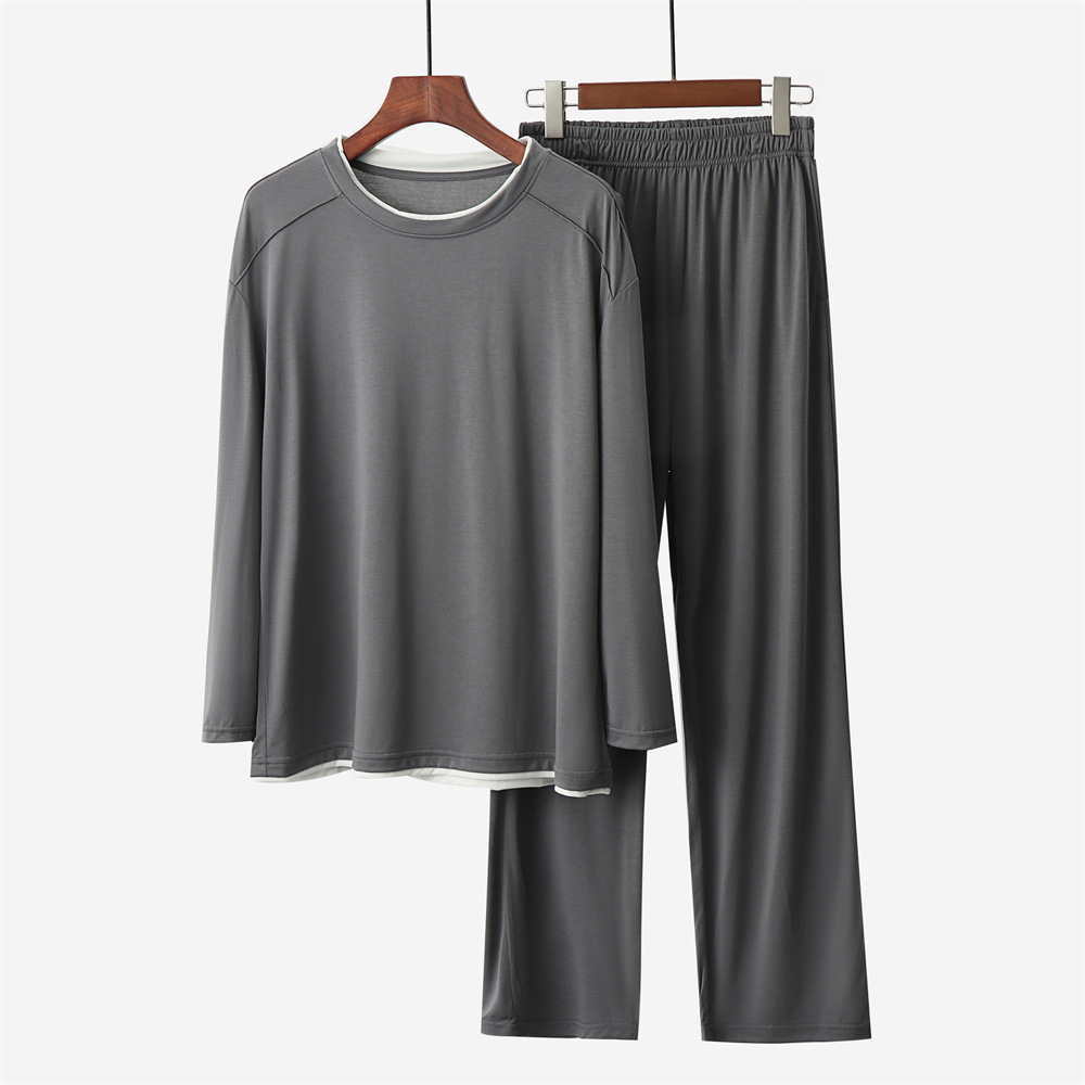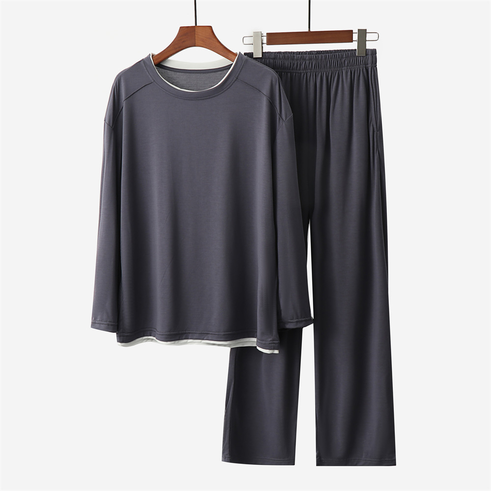 코코넛 오일 Youcan 실크 잠옷 남자의 봄과 가을 긴 소매 홈 옷 남자의 얇은 둥근 목 풀오버 플러스 사이즈 세트 여름스토어 가기