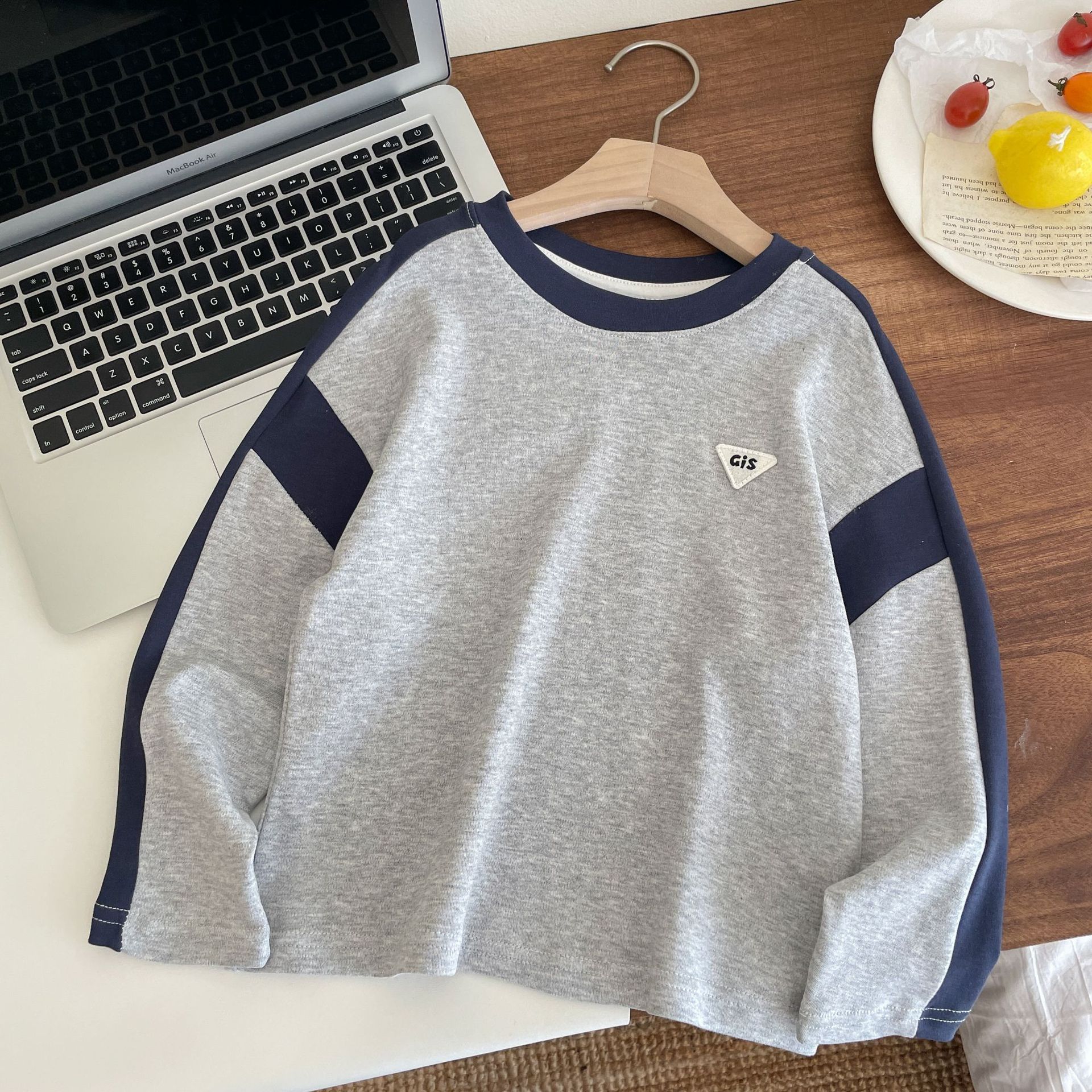 소년 긴팔 2025티셔츠 봄과 가을 어린이 캐주얼 신면베이스 스트레치 잘 생긴 둥근 목 한국 정상스토어 가기