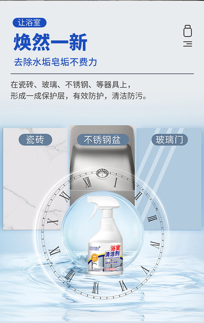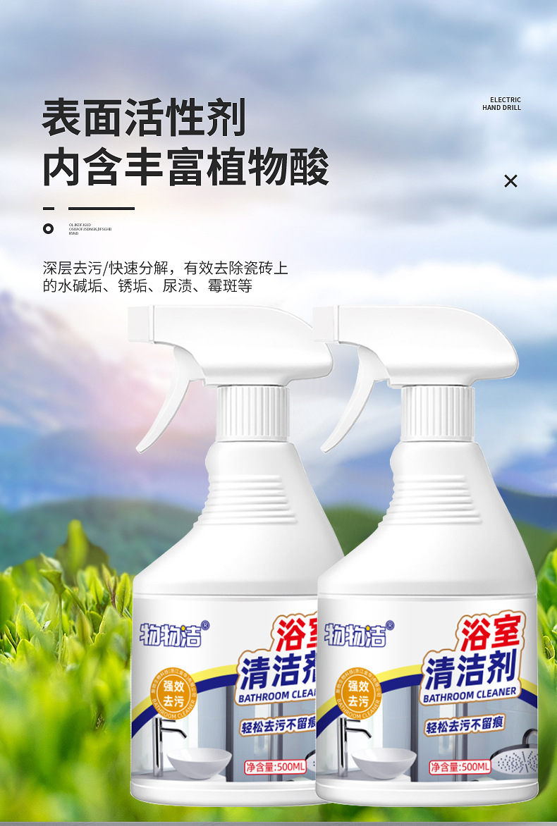 욕실 청소기 가정용 수도꼭지 유리 물 표시 클리너 아로마 타일 바닥 탈피 및 오염 제거