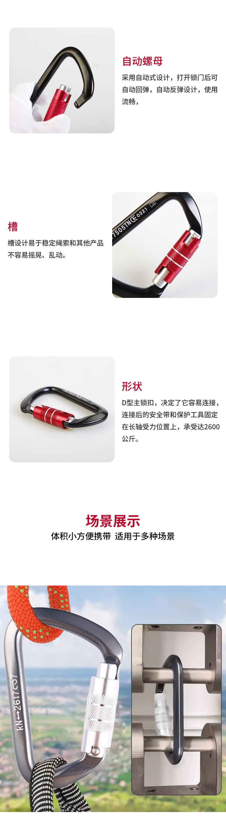 새로운 공장 야외 등산 및 암벽 등반 자동 잠금 D 형 메인 잠금 카라비너 에어 요가 교수형 후크 26KN스토어 가기