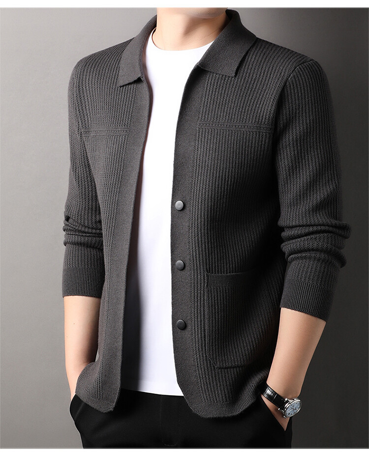 대외 무역 남자 긴 소매 카디건 스웨터 포켓 봄과 가을 새로운 단색 플립 칼라 패션 남성 캐주얼 니트웨어스토어 가기