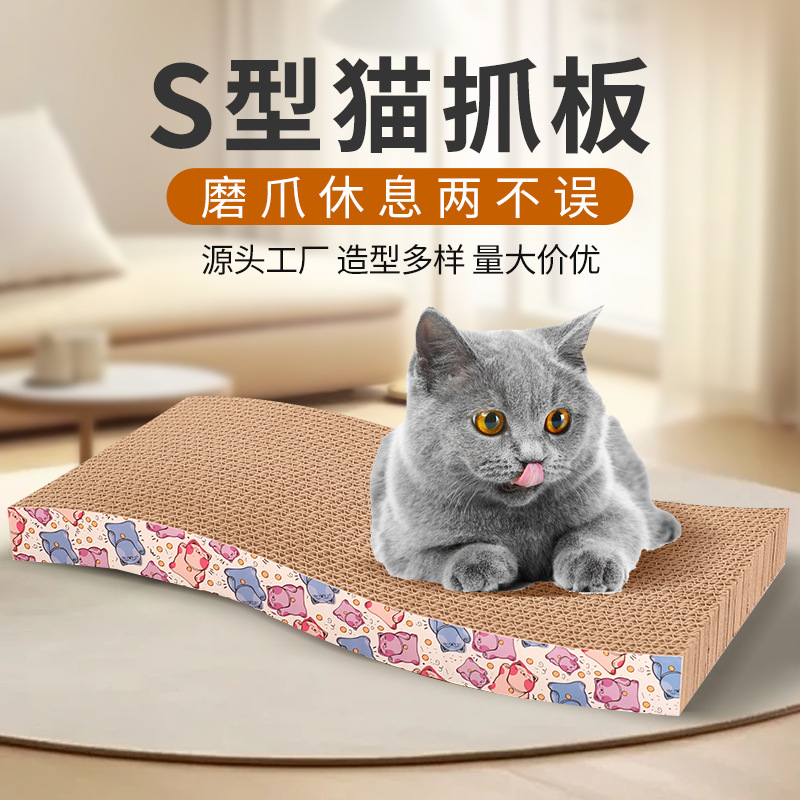 S 자형 골판지 고양이 스크래치 보드 두껍게 4CM 고밀도 고양이 둥지 내마모성 애완 동물 장난감 고양이 스크래치 보드 제조 업체스토어 가기