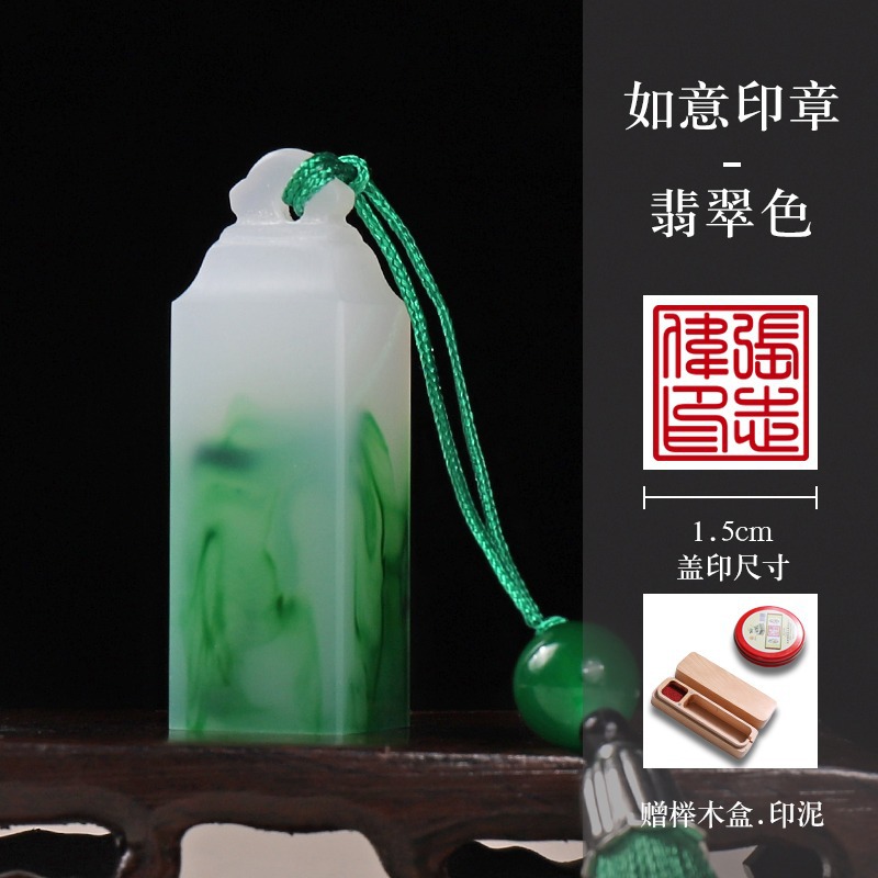 • 에메랄드 색상 - 1.5cm - 수지 Ruyi New [린넨 상자 + 철 상자 잉크 패드 보내기]
