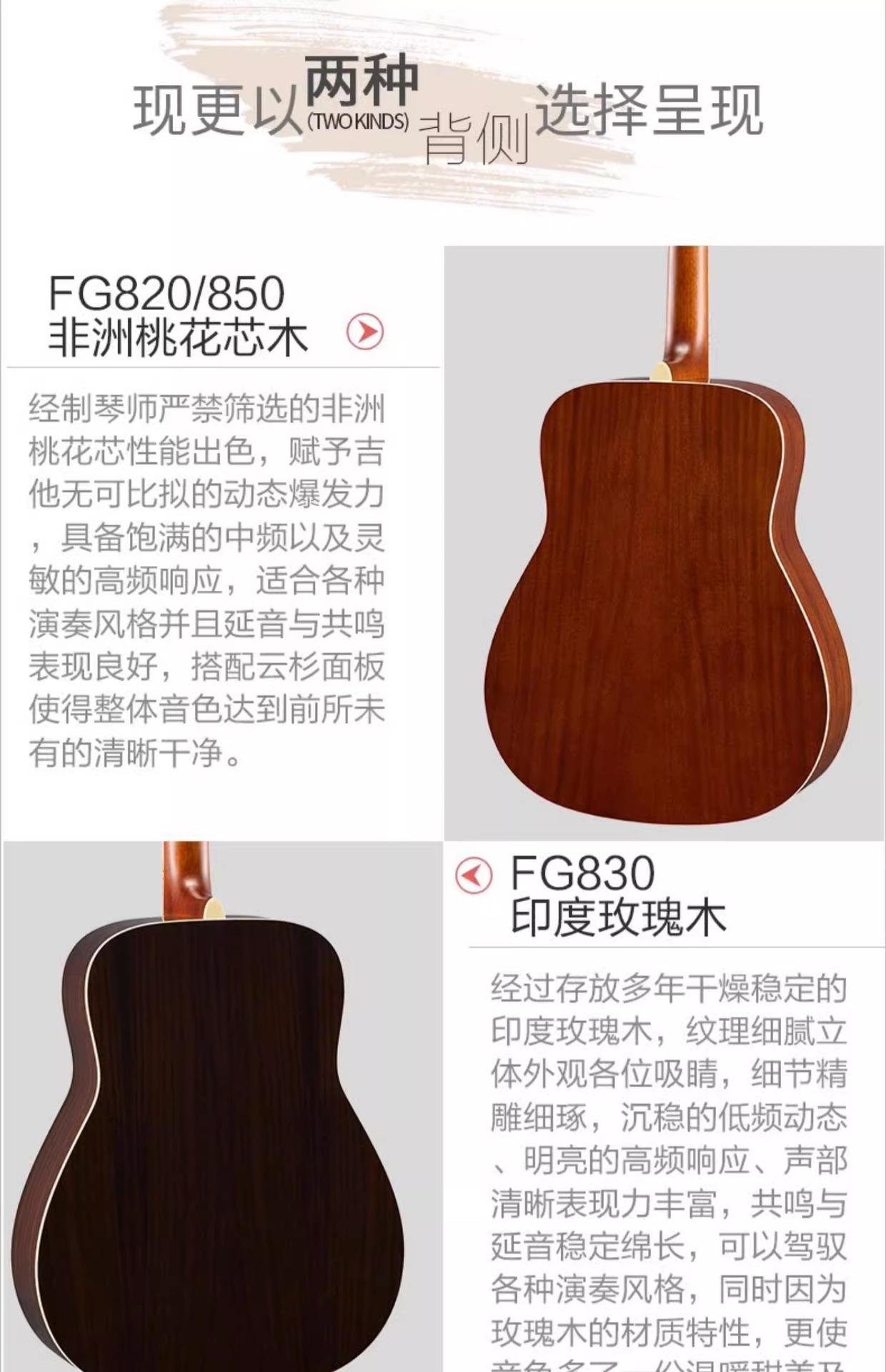 YAMAHA Yamaha 어쿠스틱 기타 FG830/850 베니어 일렉트릭 박스 전문 성능 손가락 어쿠스틱 기타스토어 가기