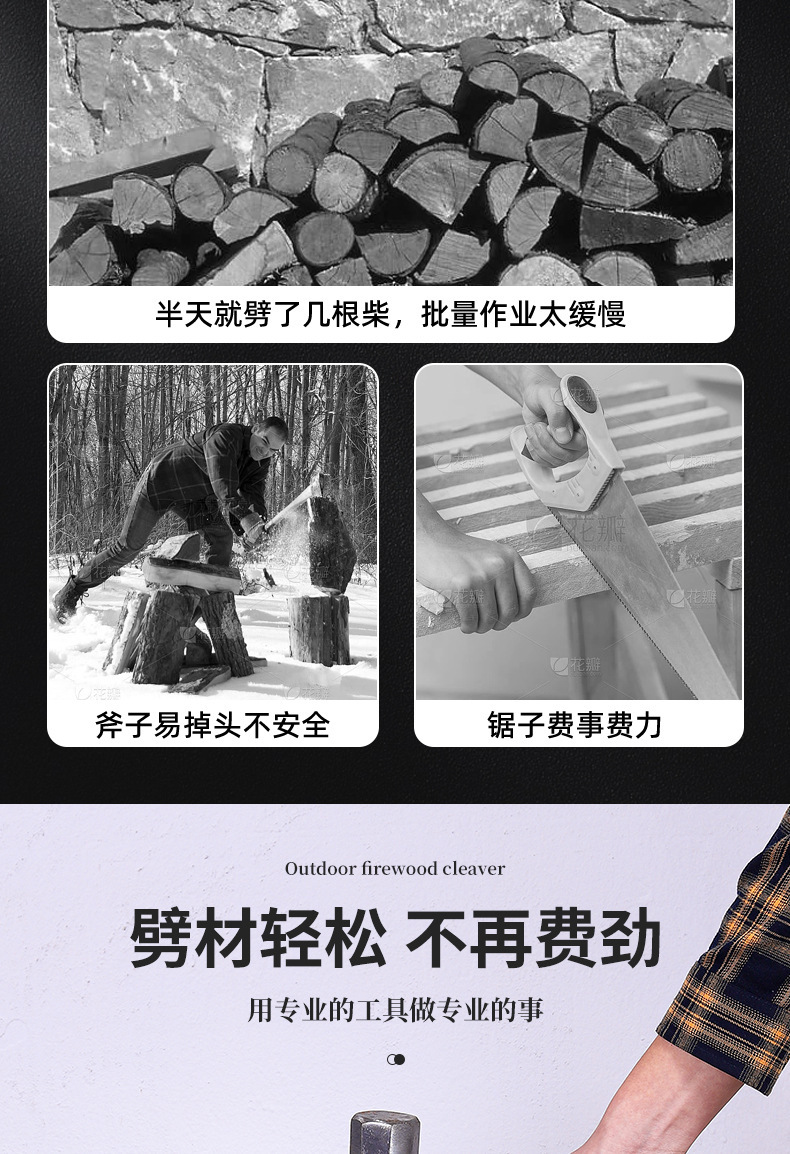 跨境家用/野营锰钢刀头手动木柴分离劈柴神器 柴火劈柴架 砍柴工具破柴劈柴器。