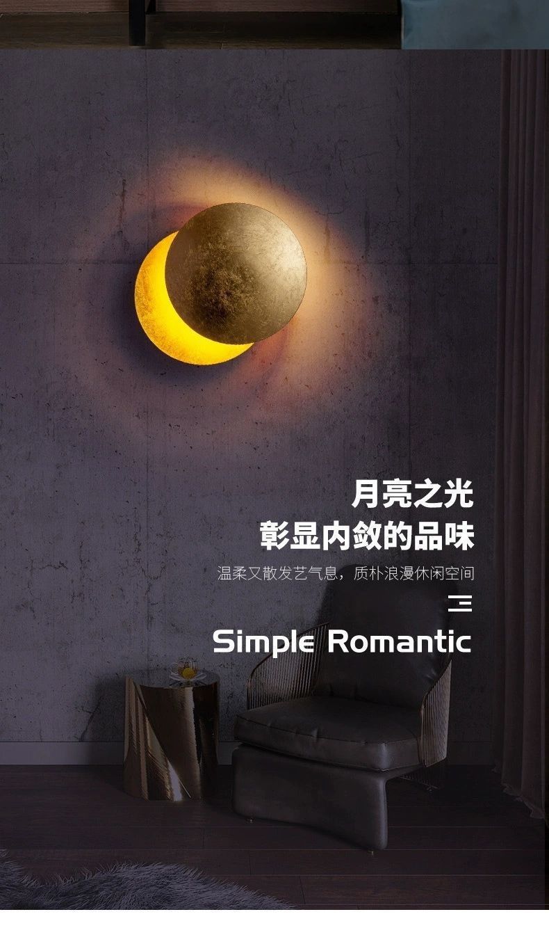 침실 LED 모조 이탈리아 디자이너 달 램프 일식과 월식 벽 램프 회전 북유럽 복도 침대 옆 램프