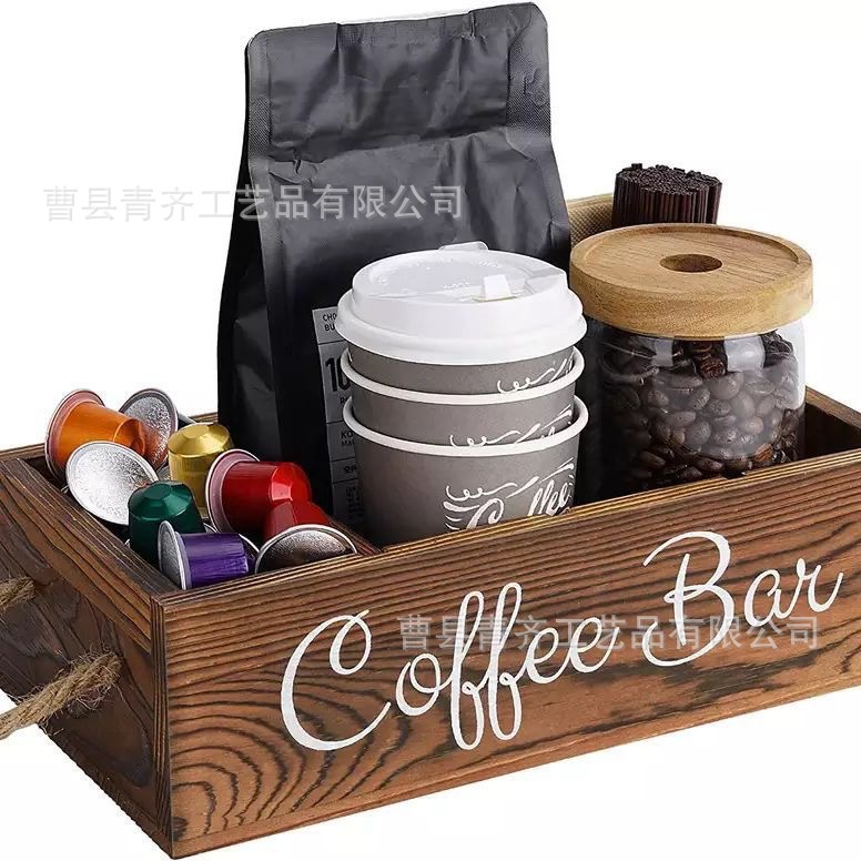 스팟 나무 복고풍 커피 캡슐 보관 상자 커피 콩 커피 컵 칸막이 정리 상자 티백 보관 상자