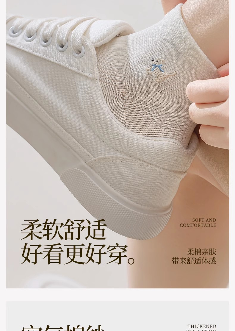 양말 여성면 양말 봄과 여름 항균 탈취제 통기성 뼈없는 양말 안티 필링 강아지 자수 여성면 양말스토어 가기