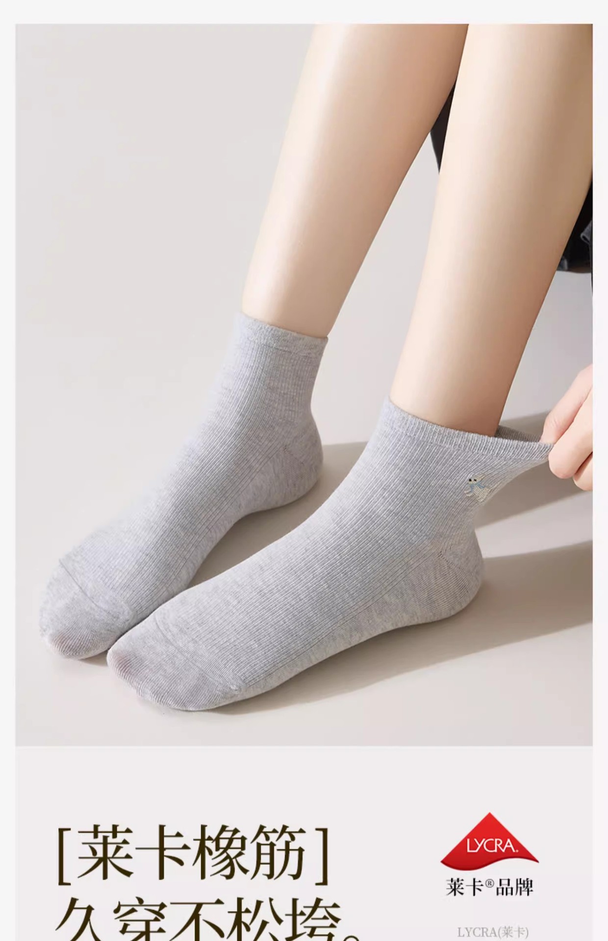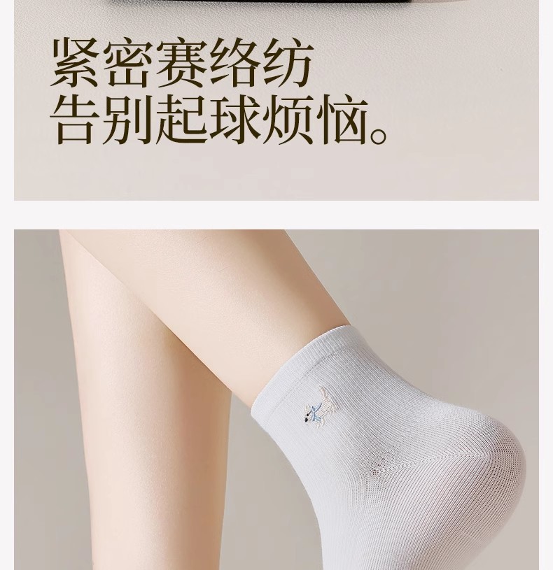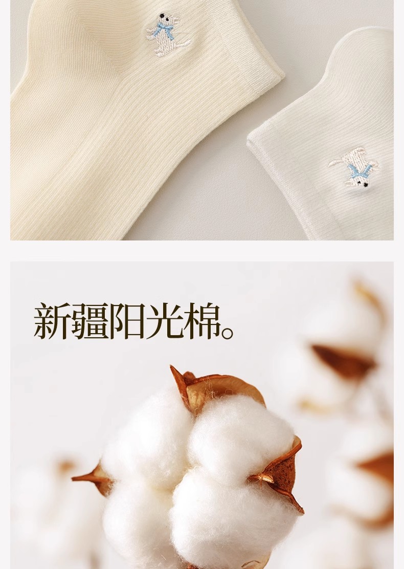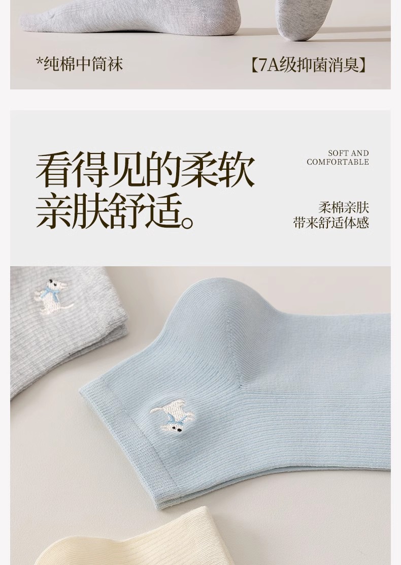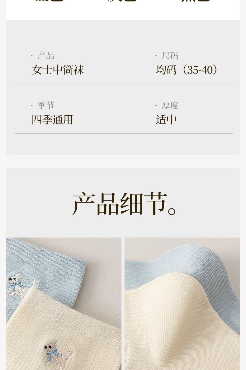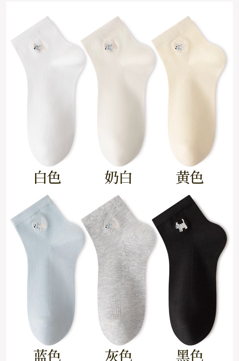 양말 여성면 양말 봄과 여름 항균 탈취제 통기성 뼈없는 양말 안티 필링 강아지 자수 여성면 양말