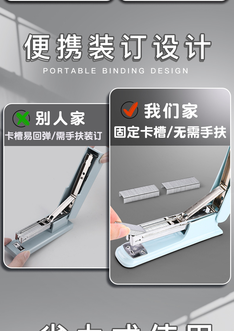 스테이플러 학생 크림 컬러 오피스 홈 노동 절약 대형 문구 멀티 기능 업그레이드 스테이플러 홈