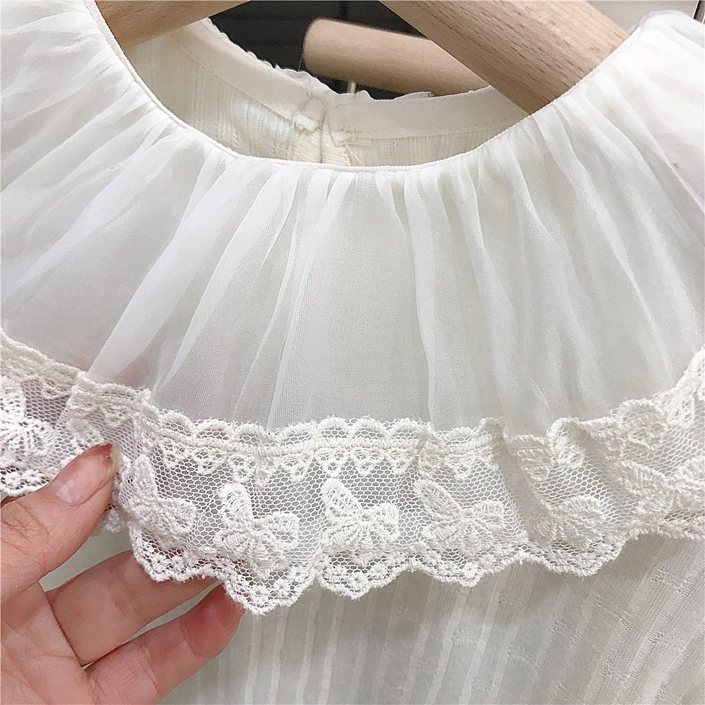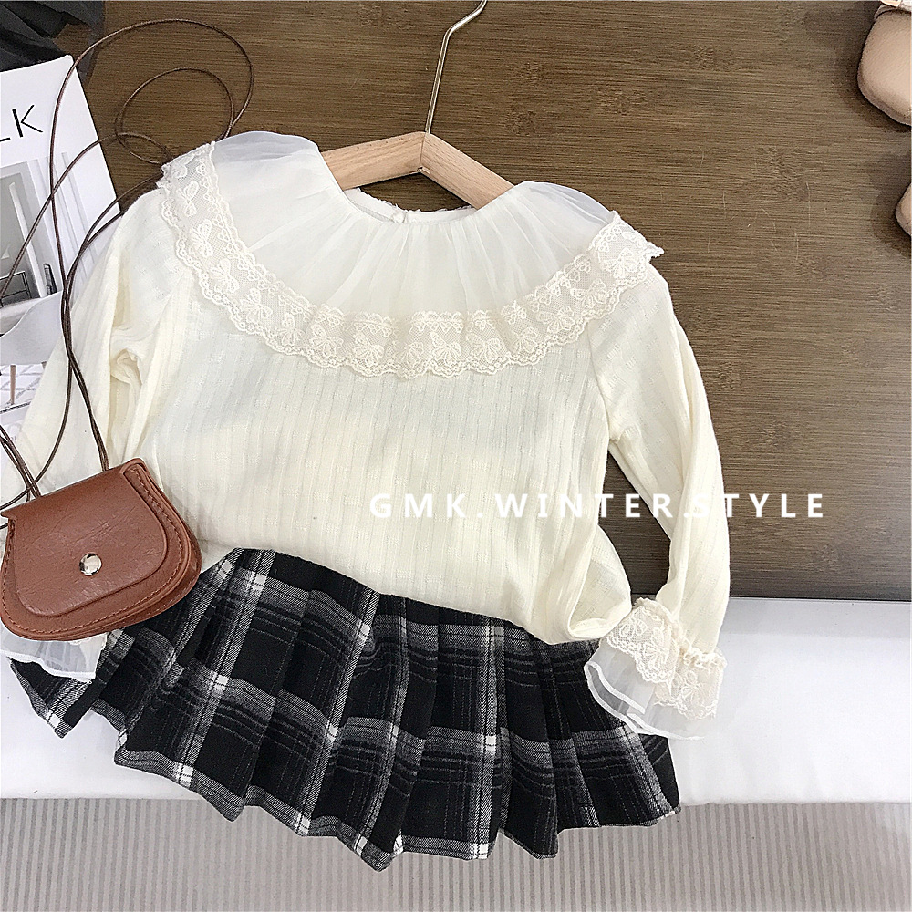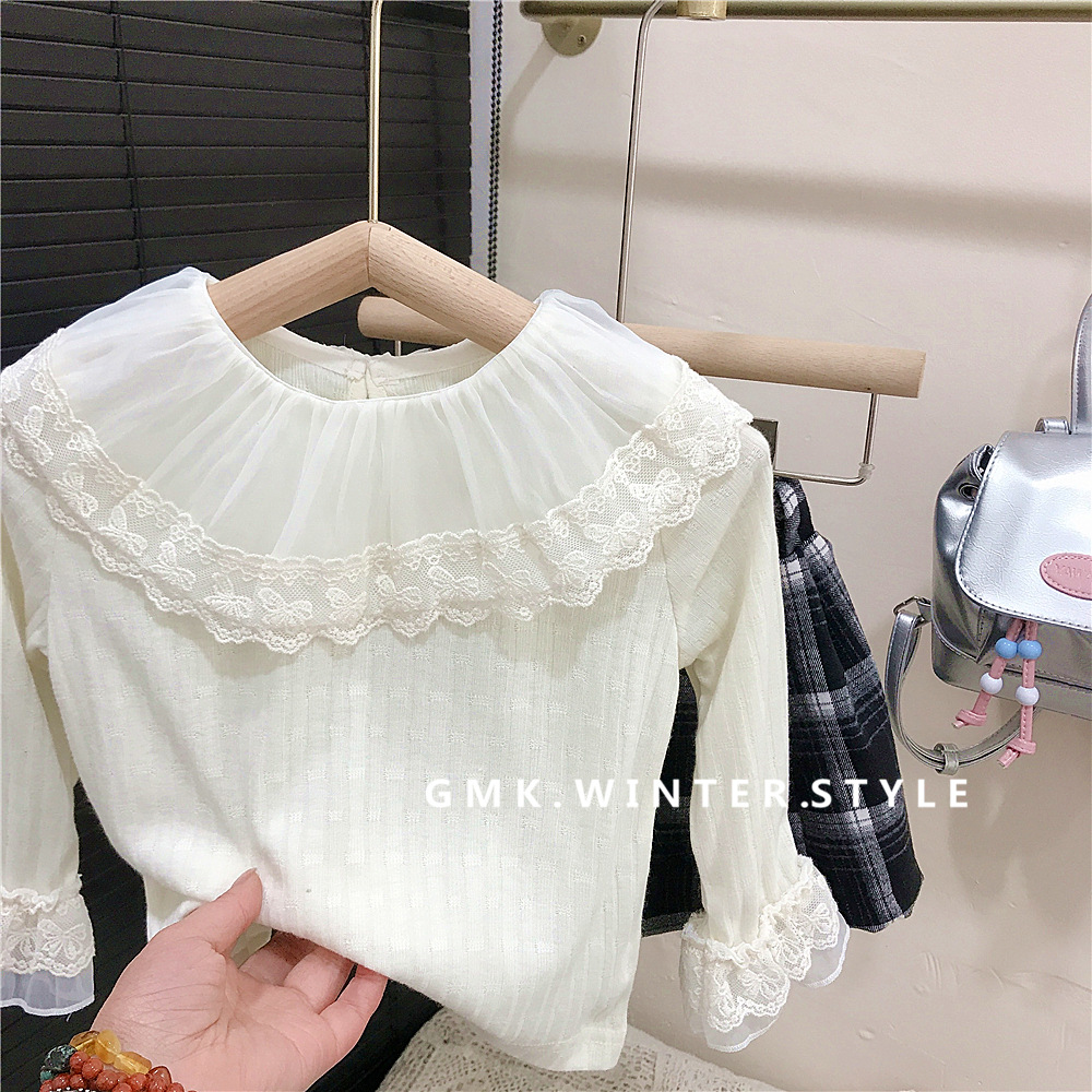 여아용 티셔츠 긴팔 봄 새 어린이 캐주얼 레이스 솔리드 컬러 한국 스타일 봄 가을 여성 보물베이스 셔츠