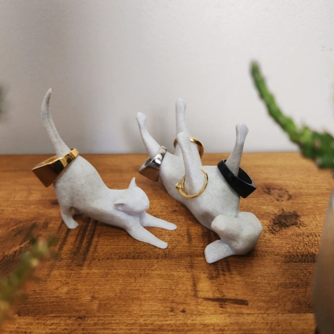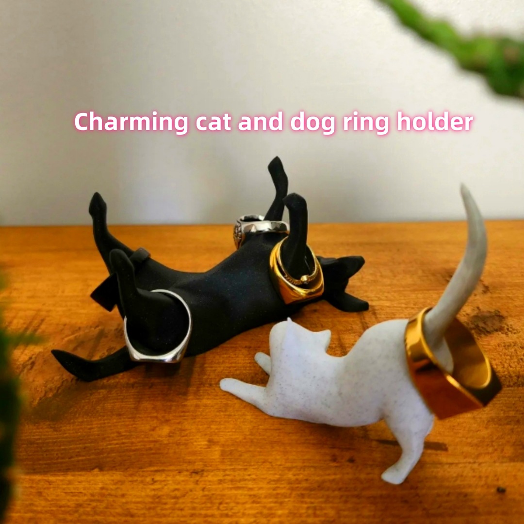 매력적인 고양이와 개 보석 랙 세트-귀여운 데스크탑 링 스탠드, 세련된 데스크탑 장식