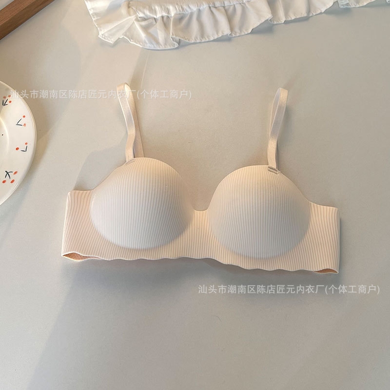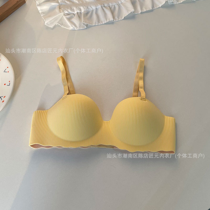 칵테일 스트라이프 브라 여성용 작은 가슴을 모아 더 크게 보이게 하는 무봉제 노와이어 업라이트 브라 고급스러운 느낌스토어 가기