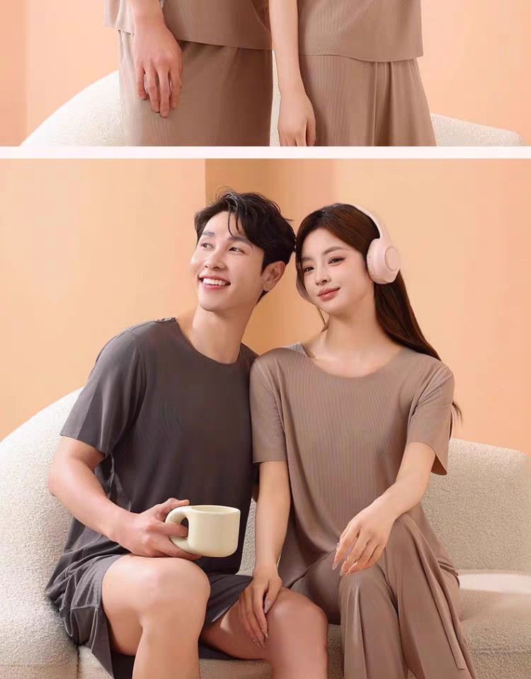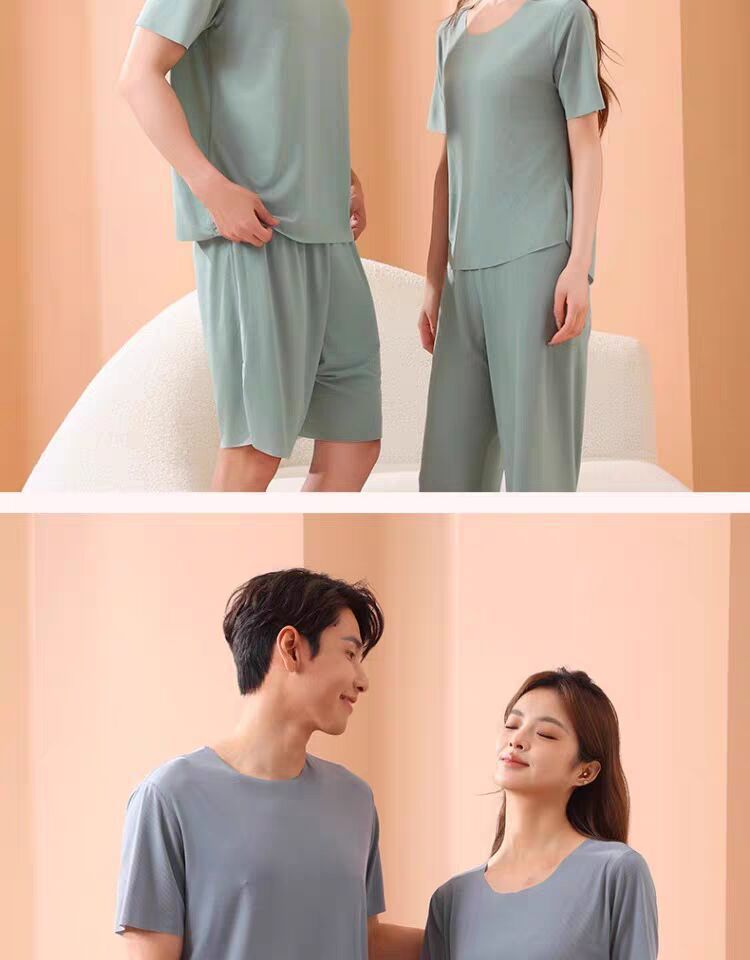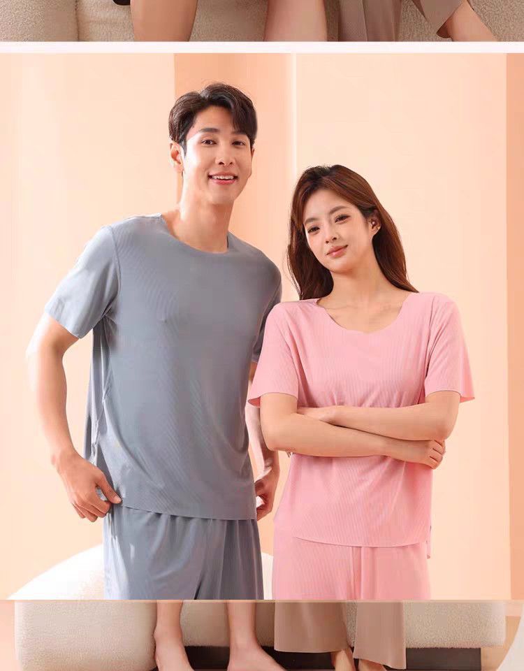 아이스 실크 커플 잠옷 세트 여성 여름 2023 느슨한 플러스 사이즈 홈 옷 남성 잠옷 재고 도매스토어 가기