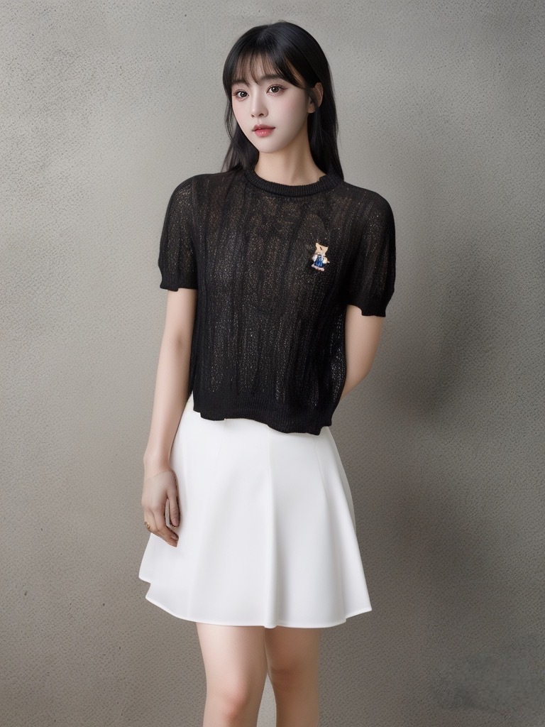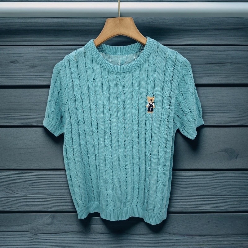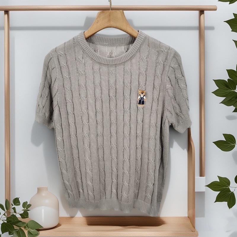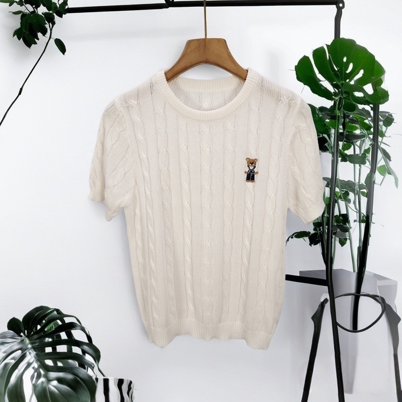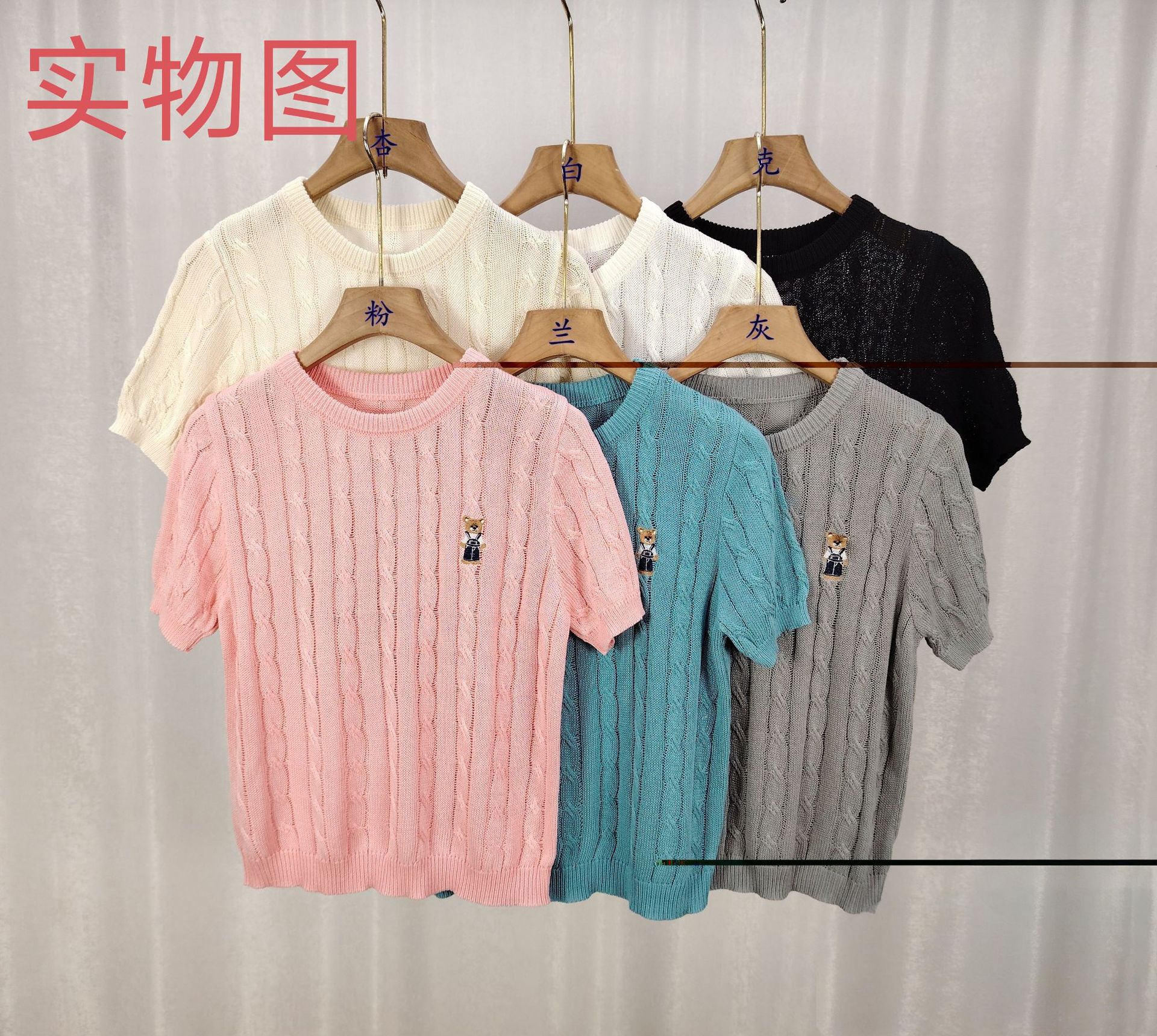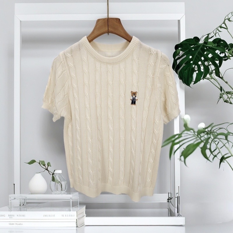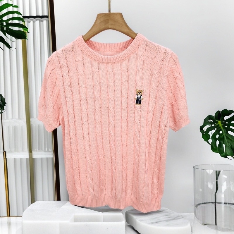 트위스트 니트 반팔 스웨터 여성의 2025 얇은 자수 아카데미 스타일 슬림 핏 빈티지 기본 레이어 셔츠 반소매 탑스토어 가기