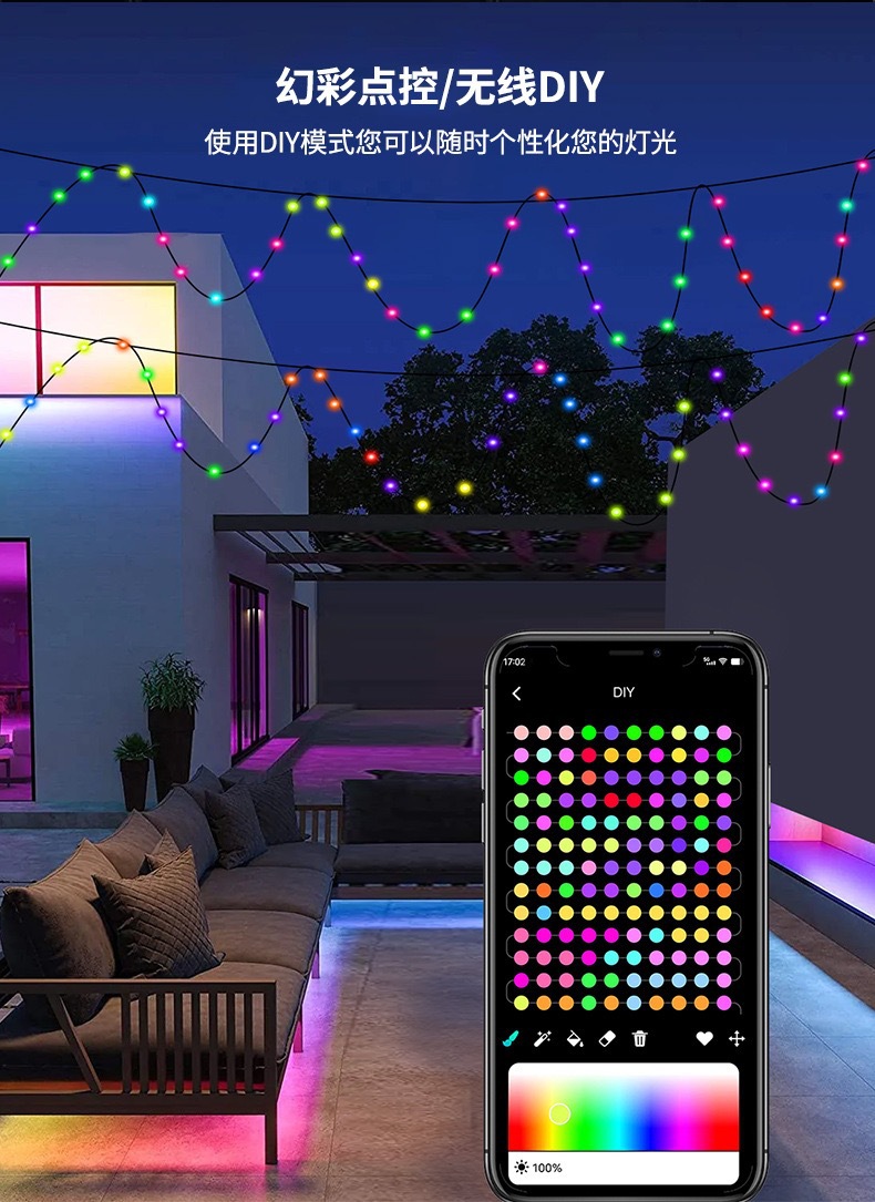 국경 간 APP 스마트 라이트 스트링 실내 및 실외 라이트 스트립 장식 조명 RGB 매직 컬러 포인트 컨트롤 가죽 라이트 USB 플러그인 라이트 스트링스토어 가기