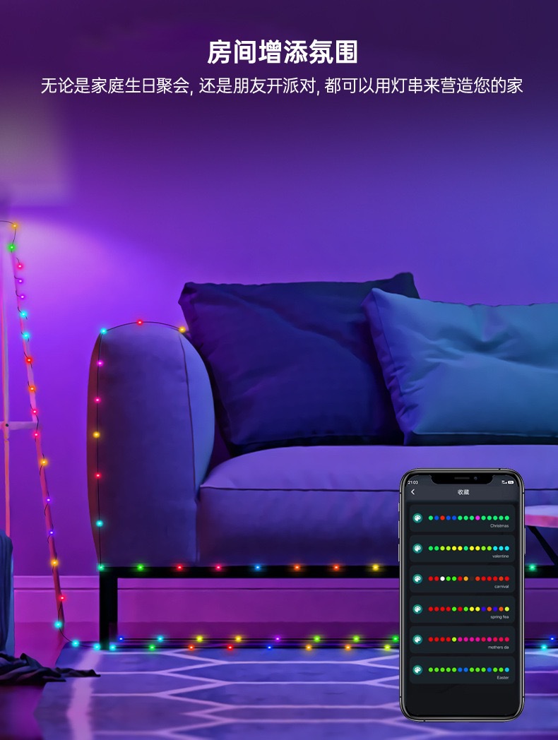 국경 간 APP 스마트 라이트 스트링 실내 및 실외 라이트 스트립 장식 조명 RGB 매직 컬러 포인트 컨트롤 가죽 라이트 USB 플러그인 라이트 스트링