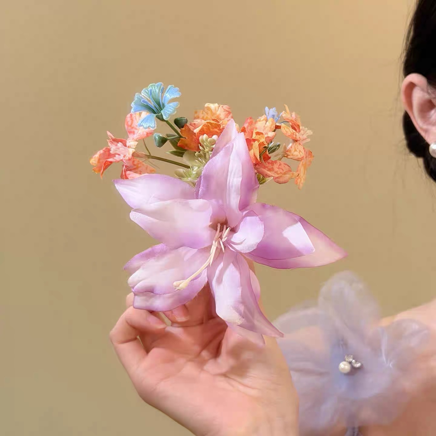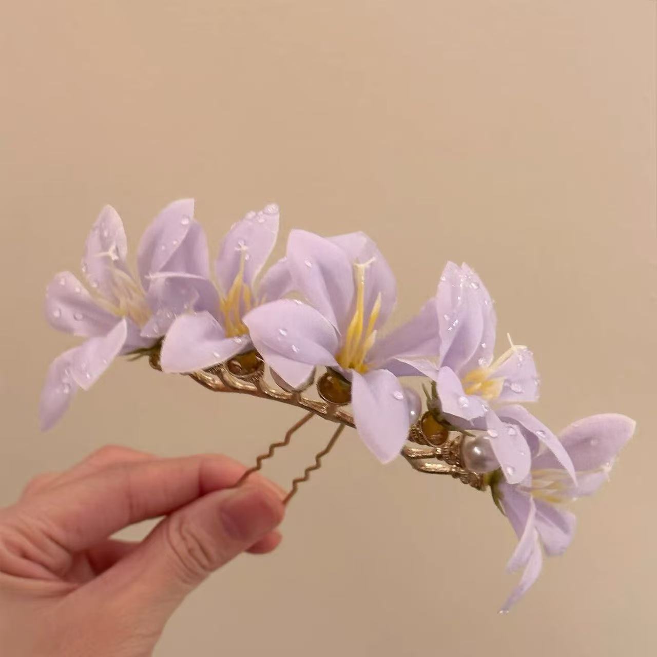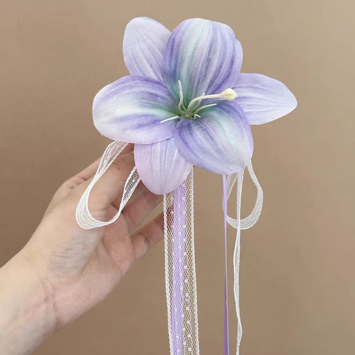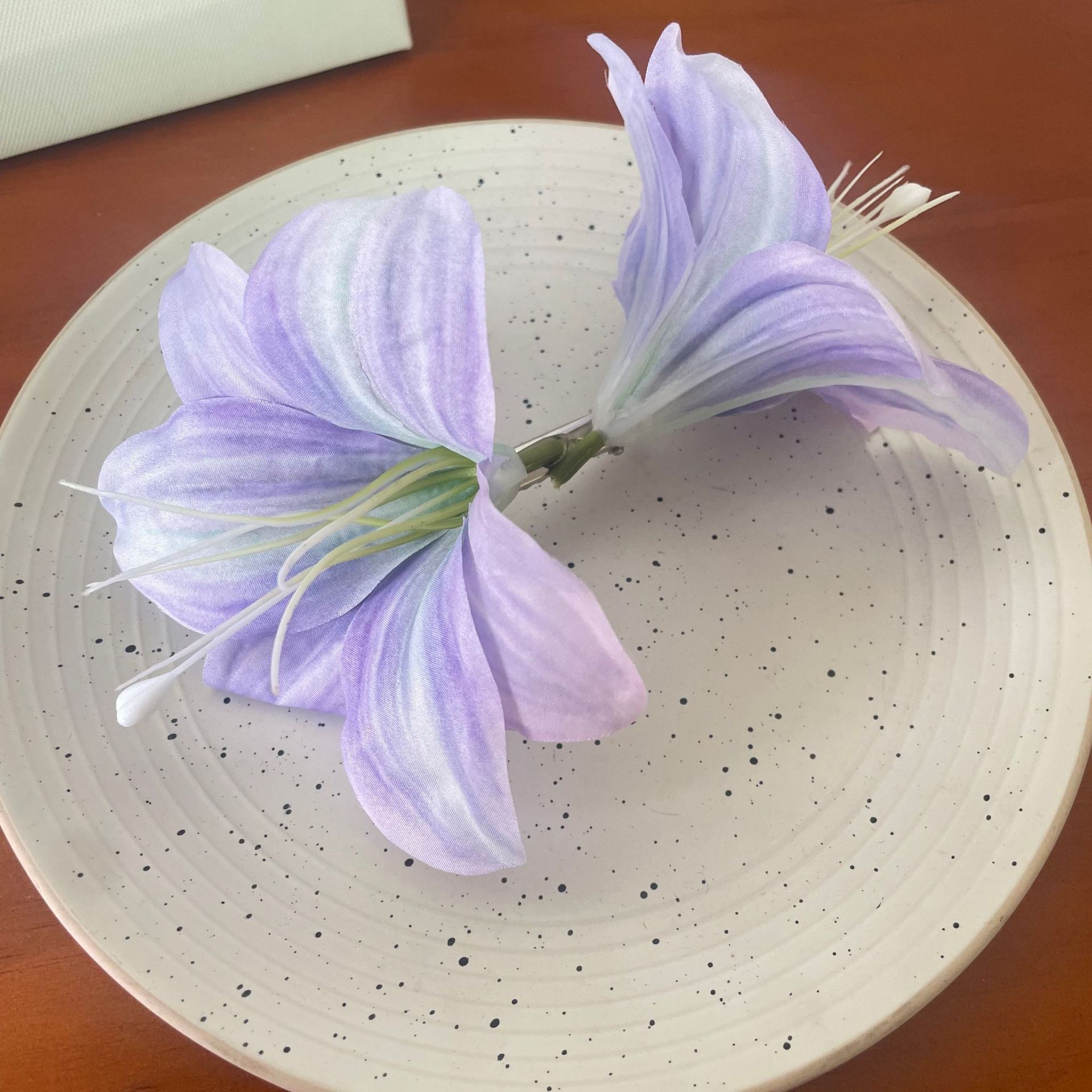 • 보라색 슈퍼 요정 백합 꽃 머리핀