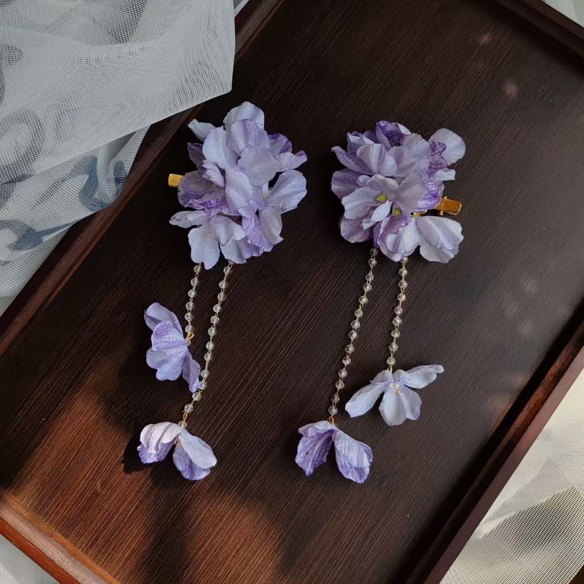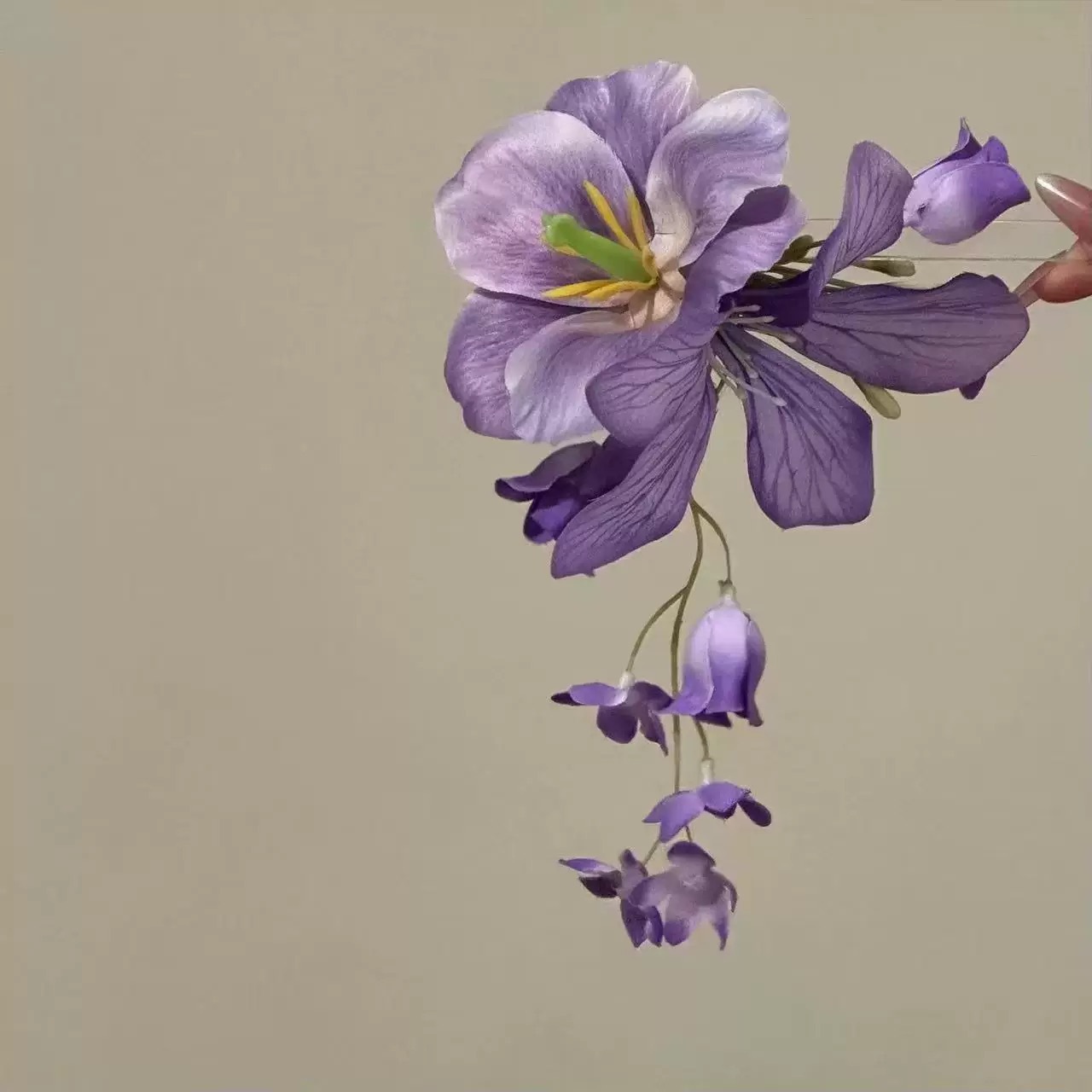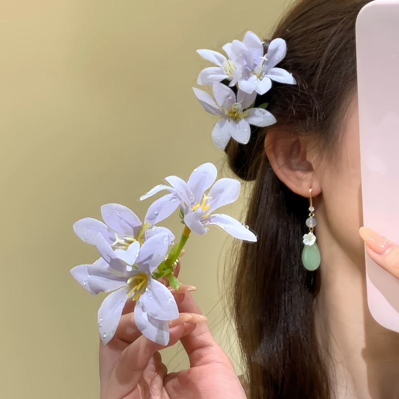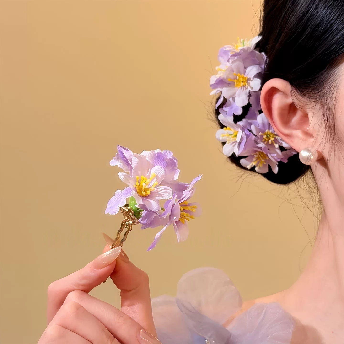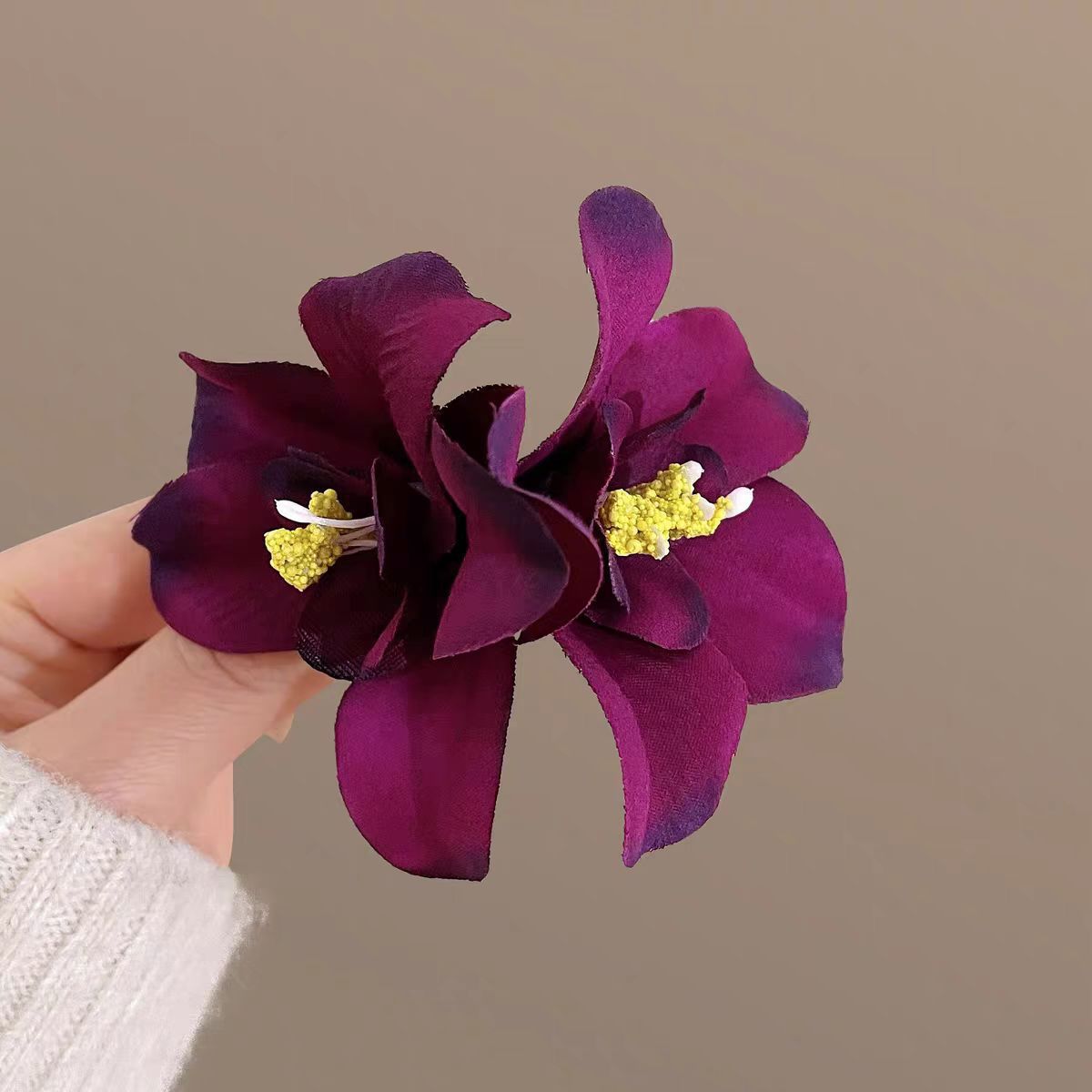 • 보라색 슈퍼 요정 백합 꽃 머리핀