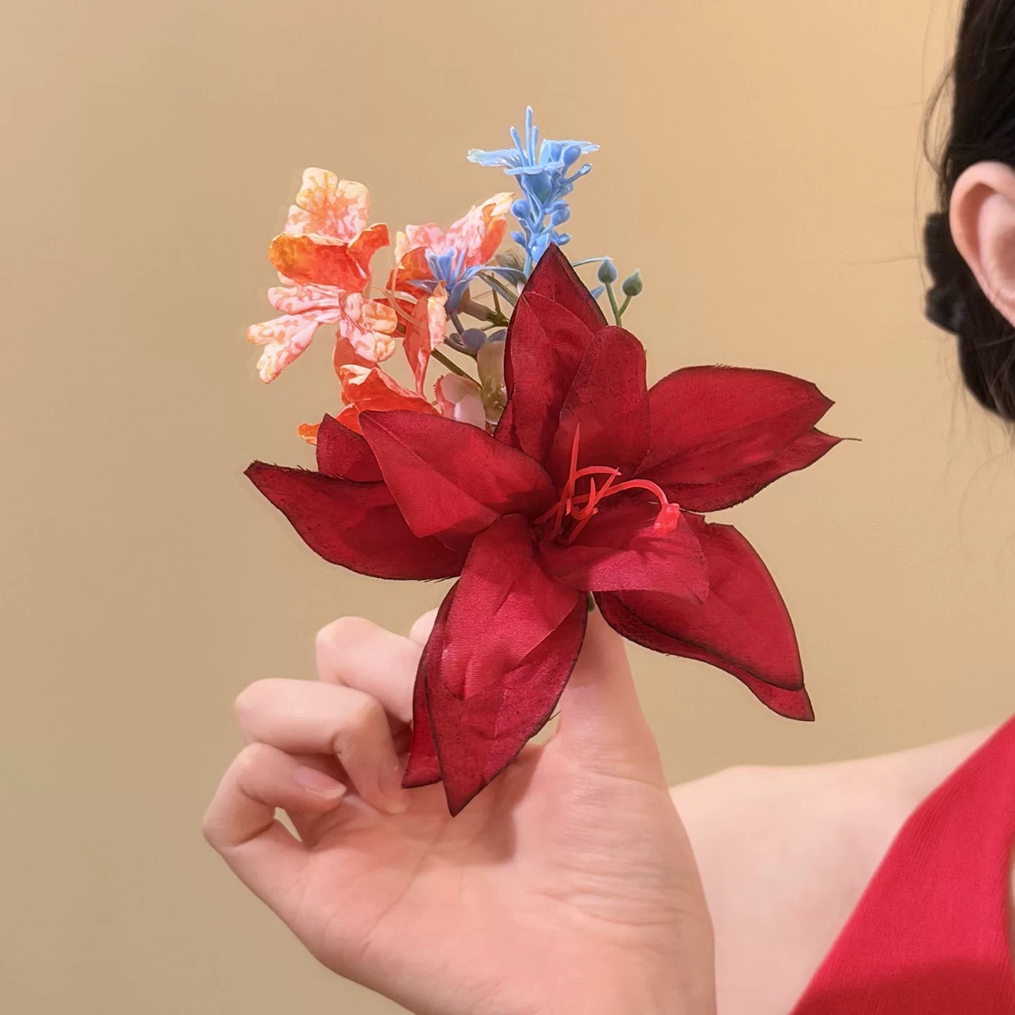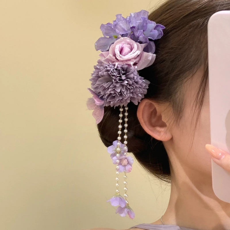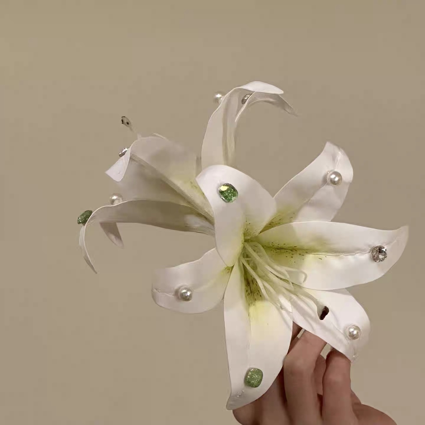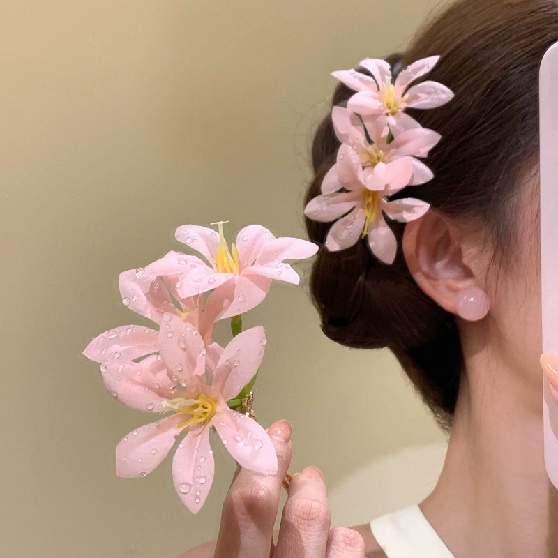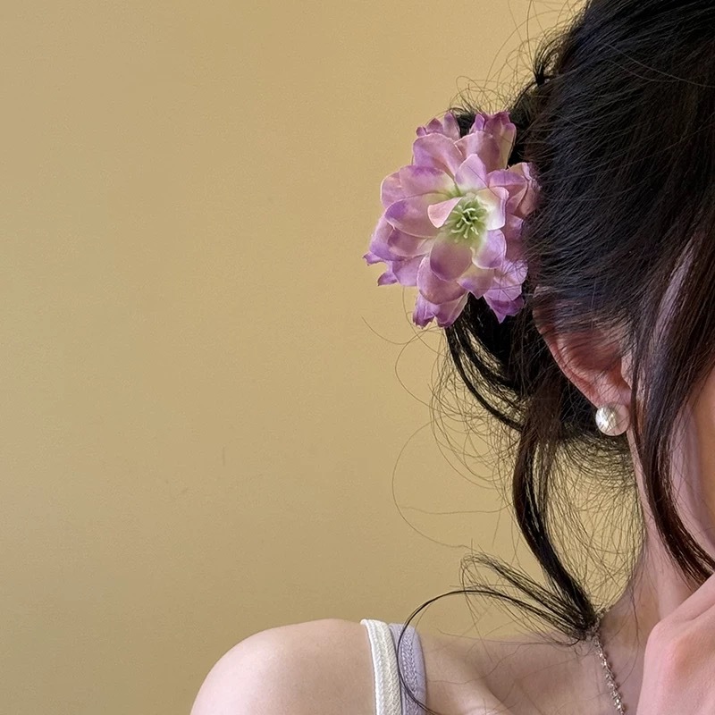 • 보라색 슈퍼 요정 백합 꽃 머리핀
