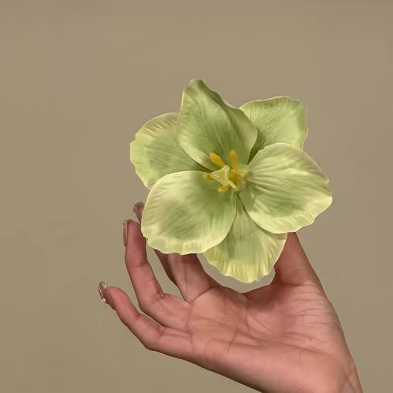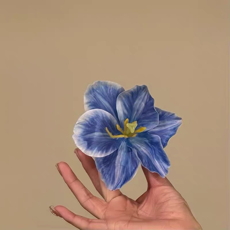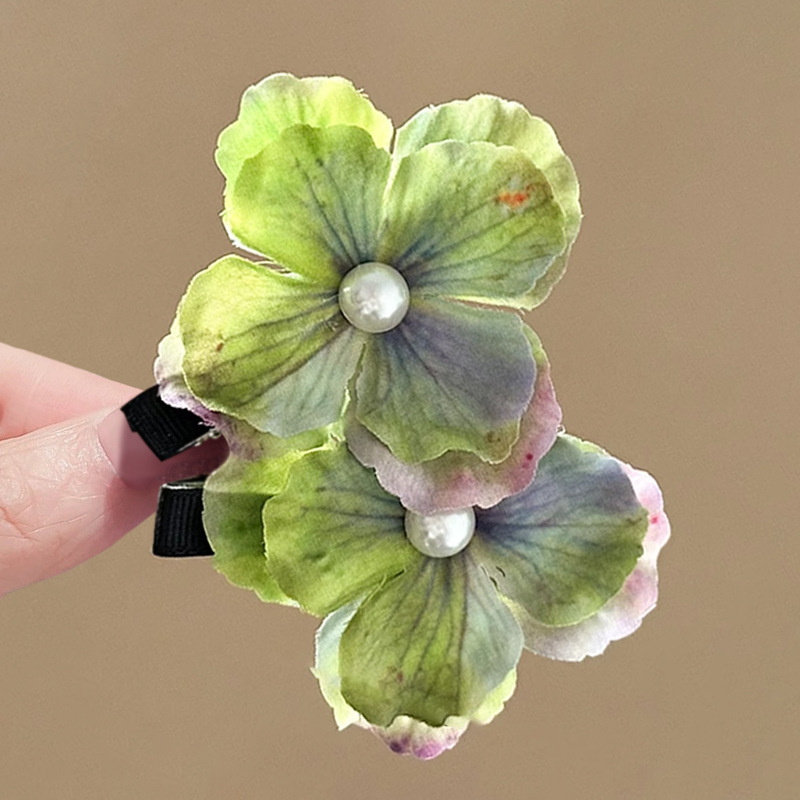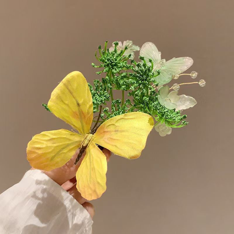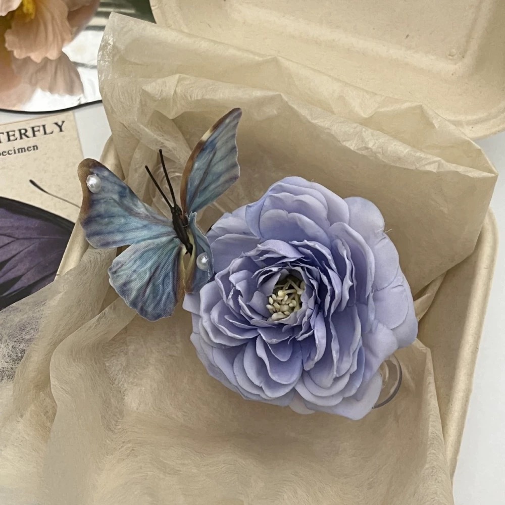• 나비 블루 그린 빅 플라워 헤어 클립