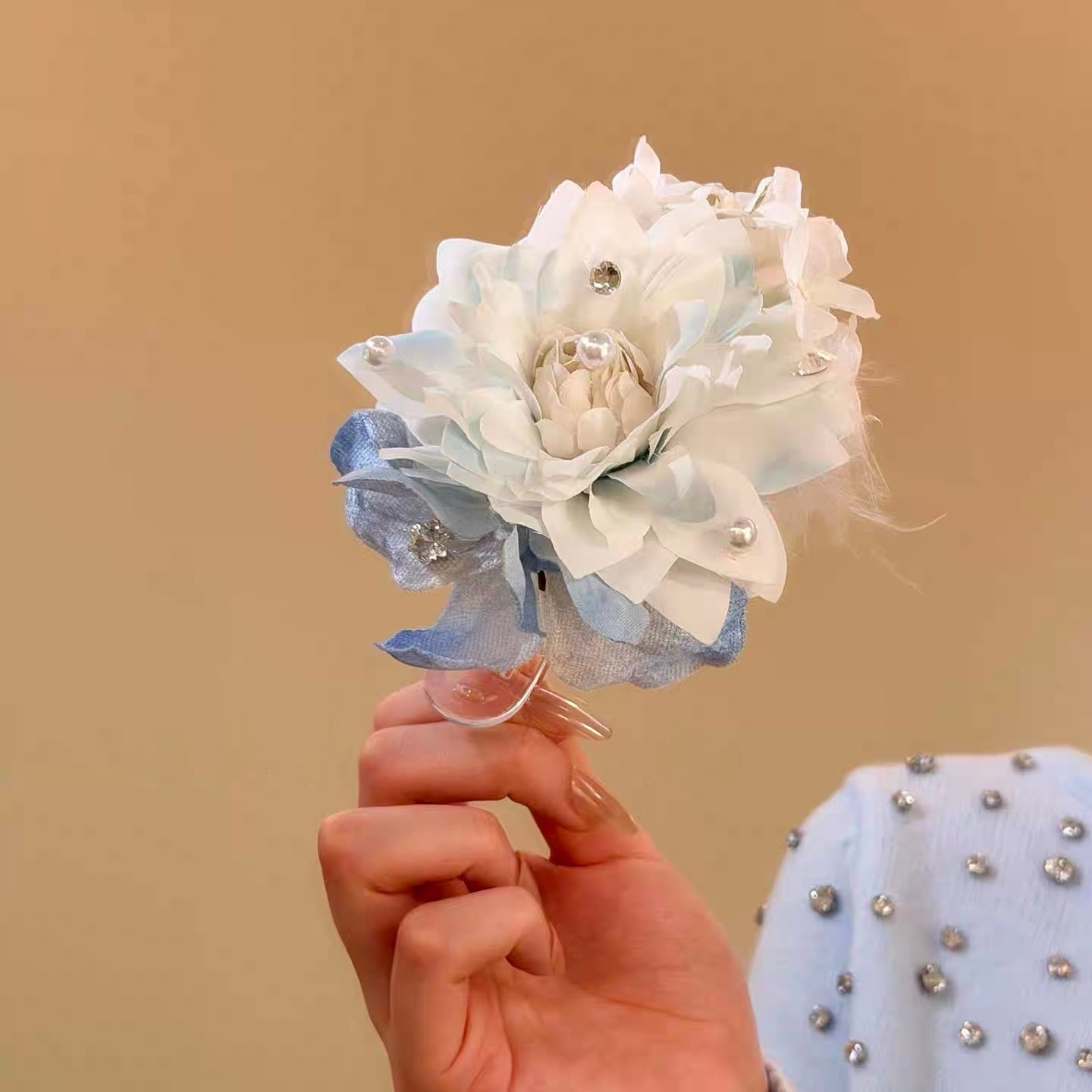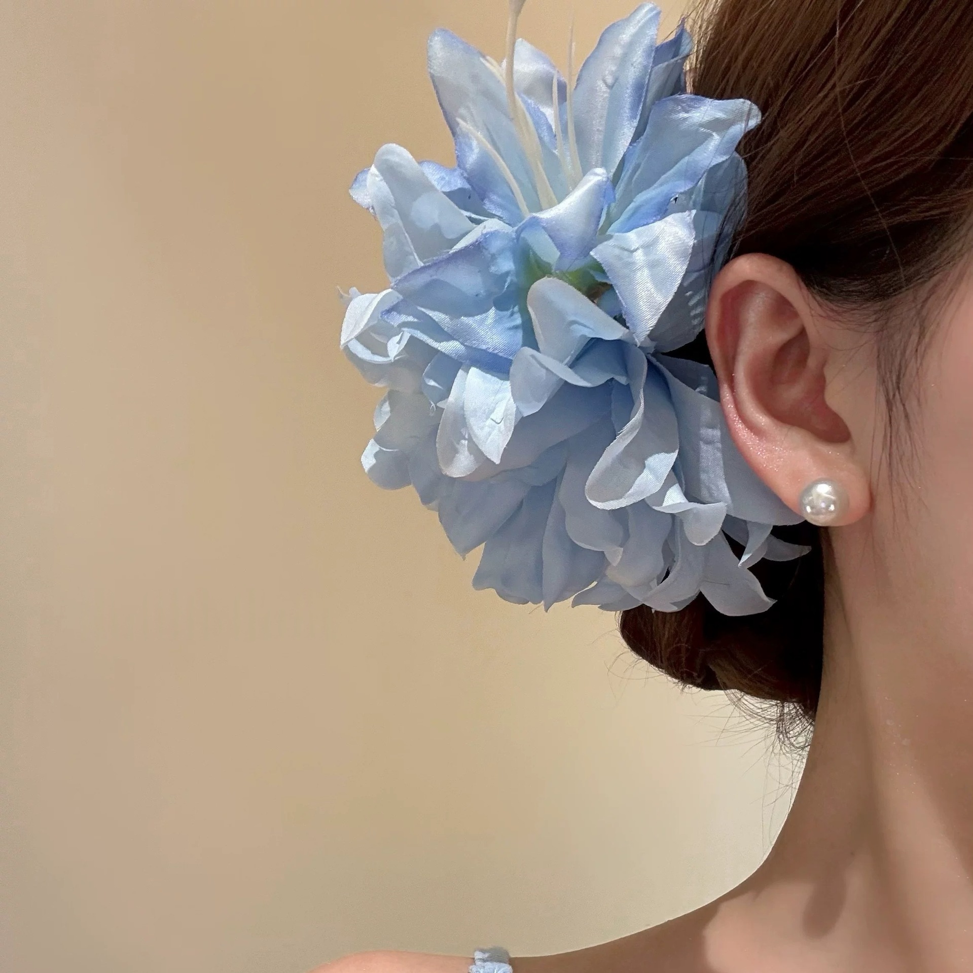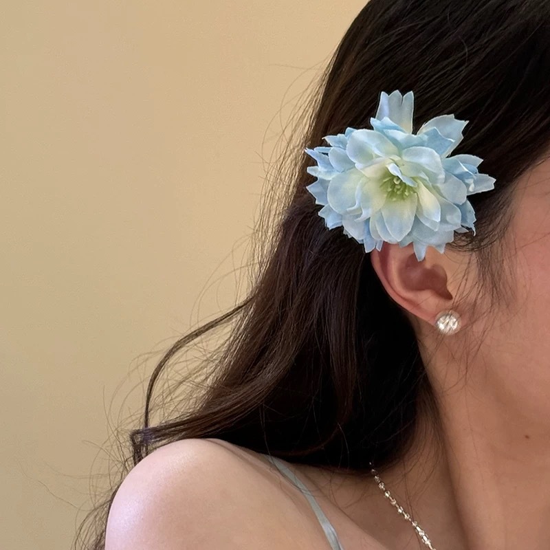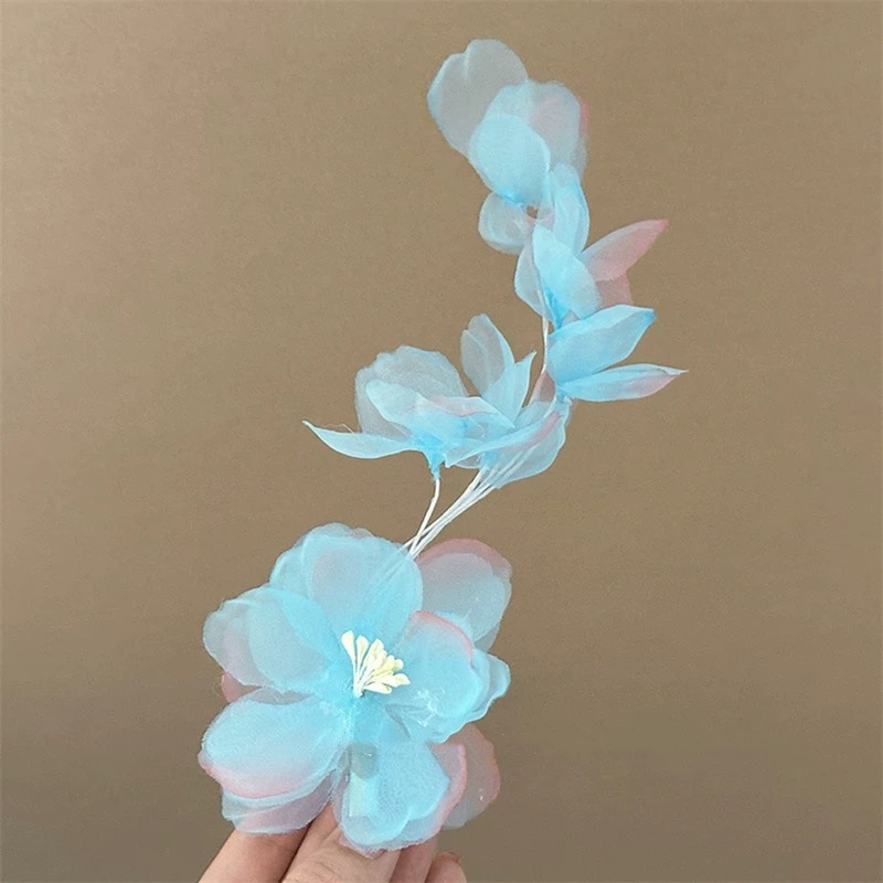 • 그라데이션 블루 쉬폰 가지 꽃 머리핀