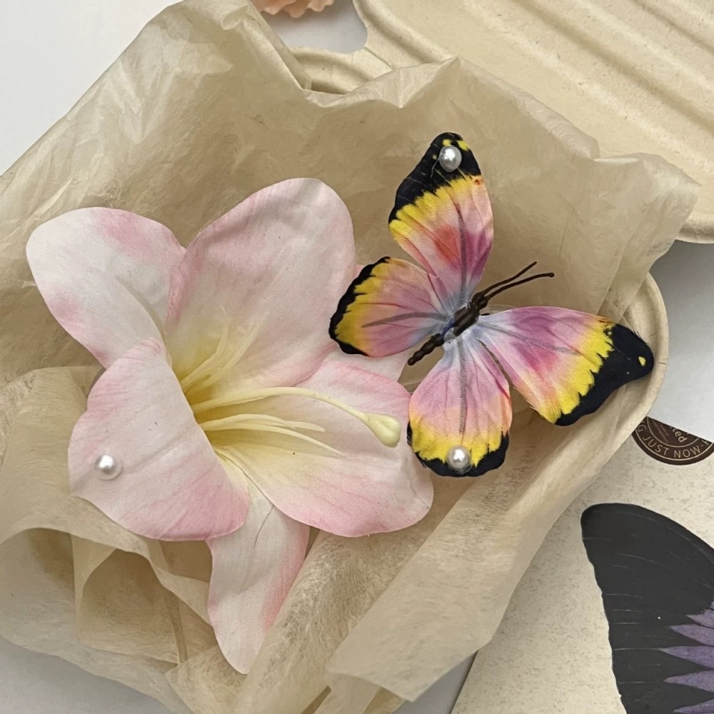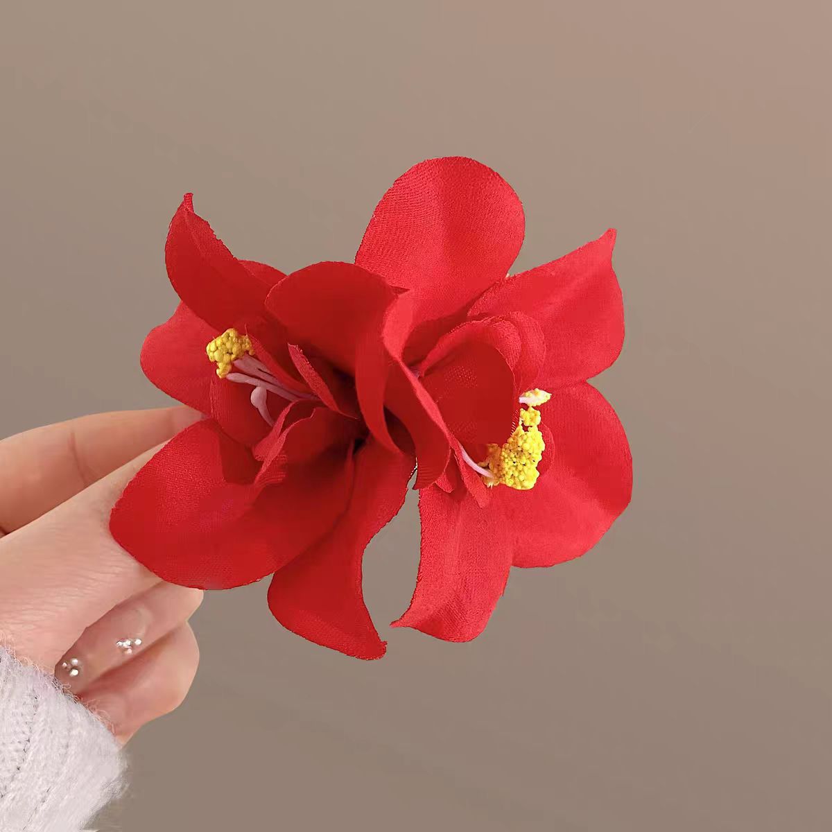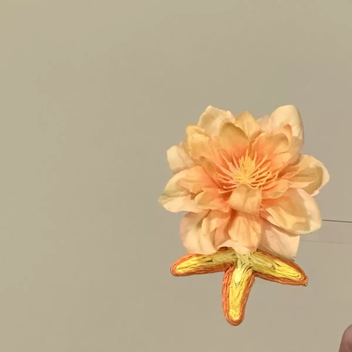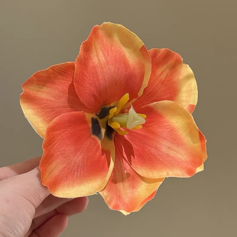• 나비 오렌지색 빅 플라워 헤어 클립