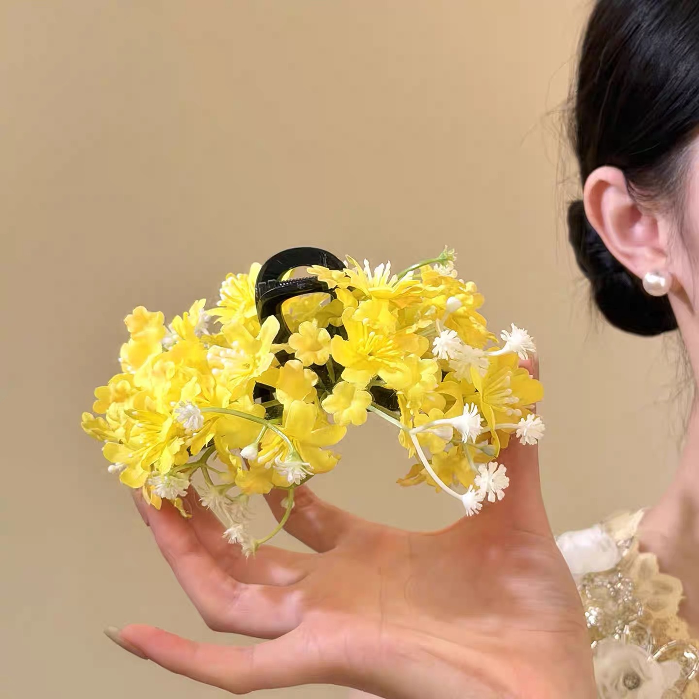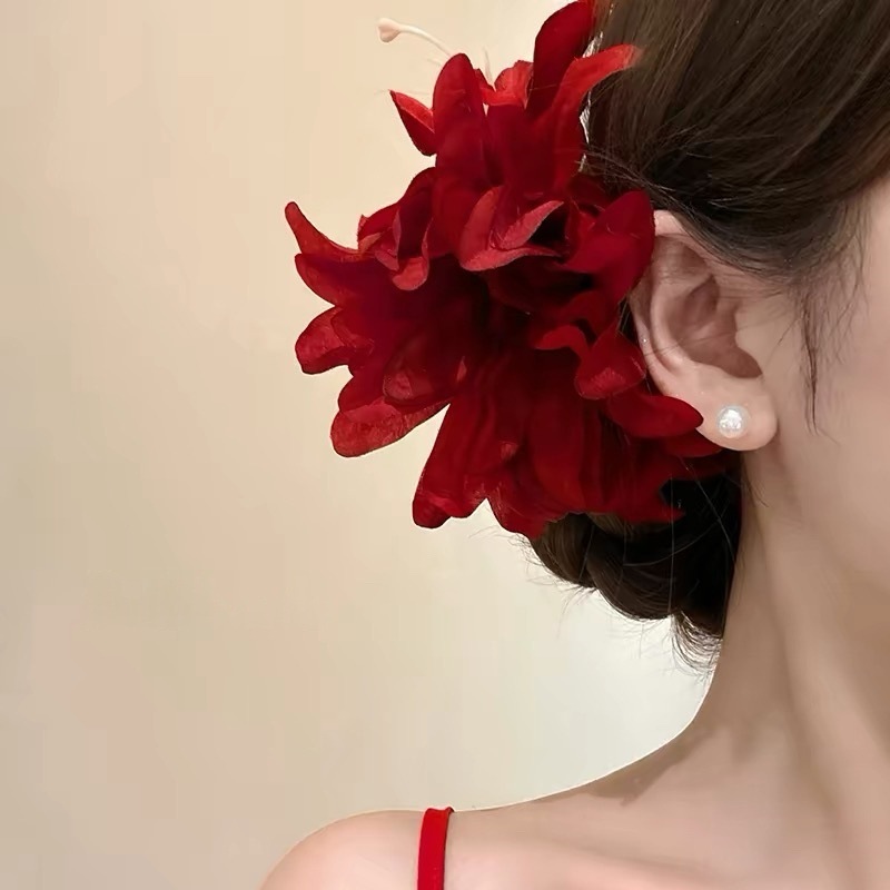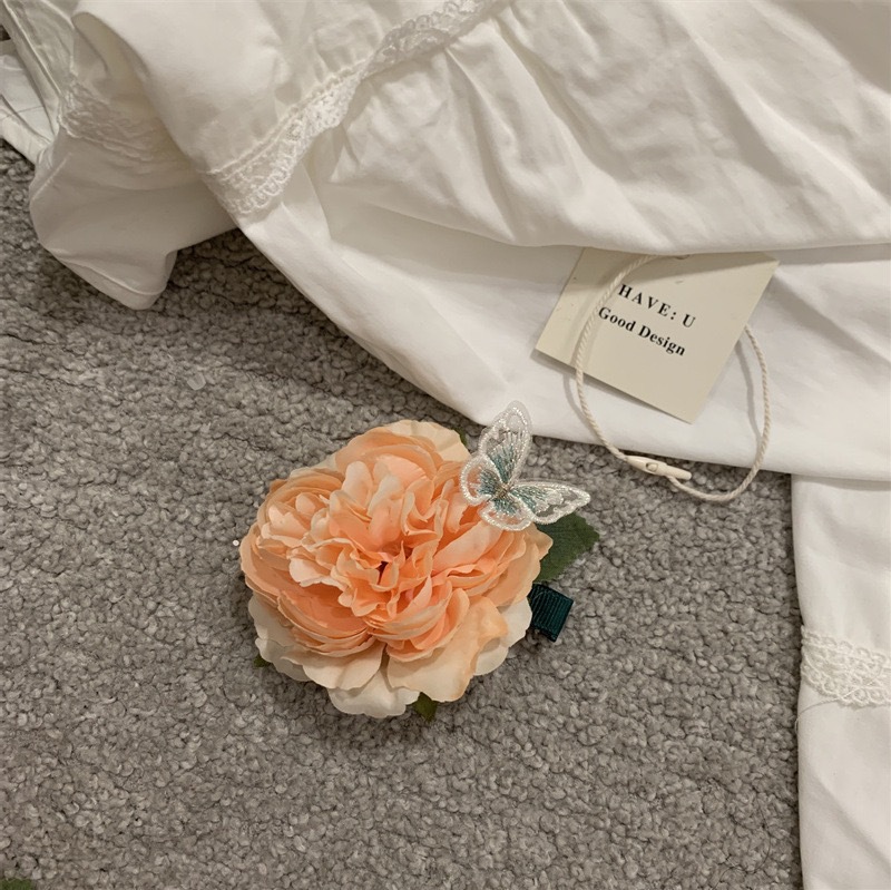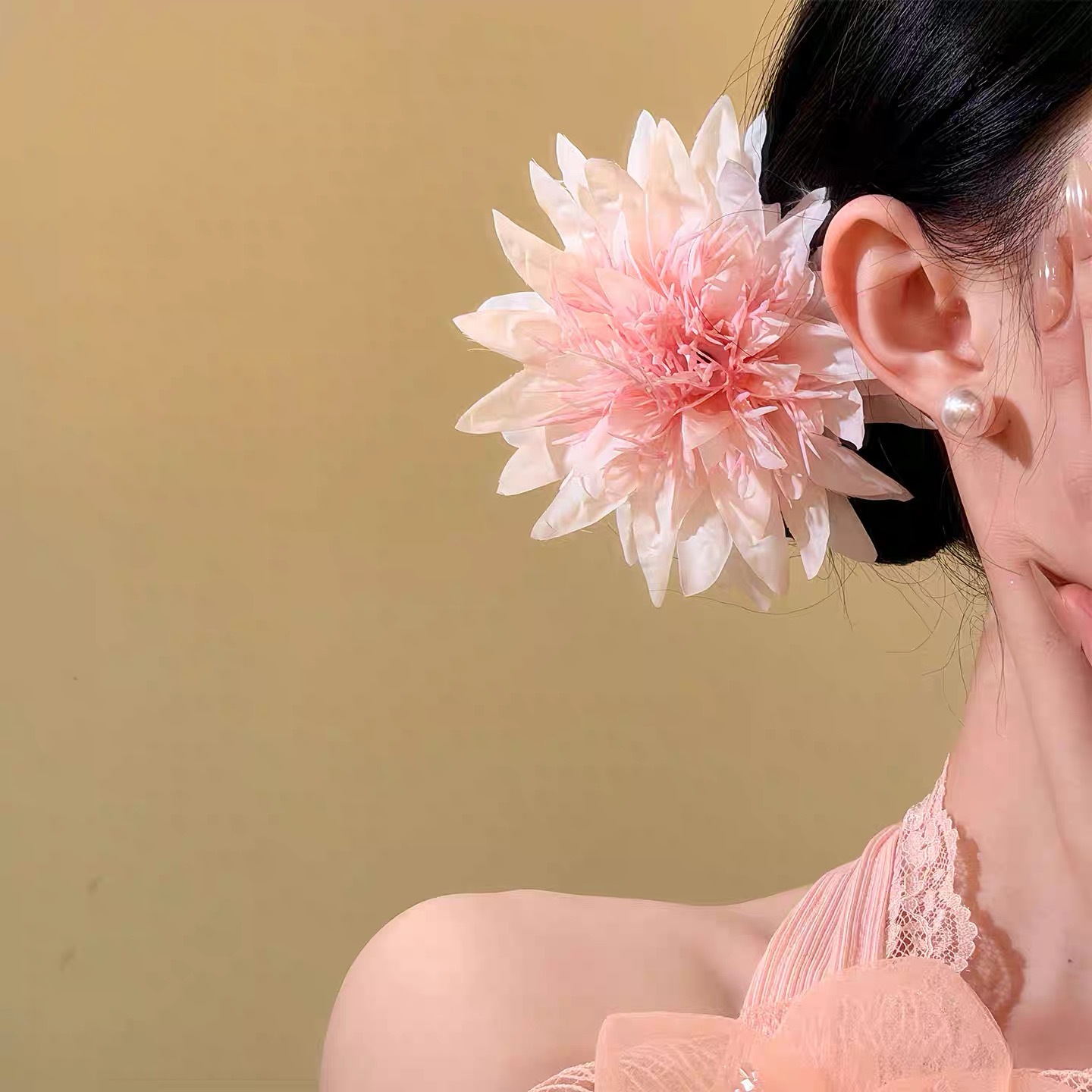 • 나비 오렌지색 빅 플라워 헤어 클립
