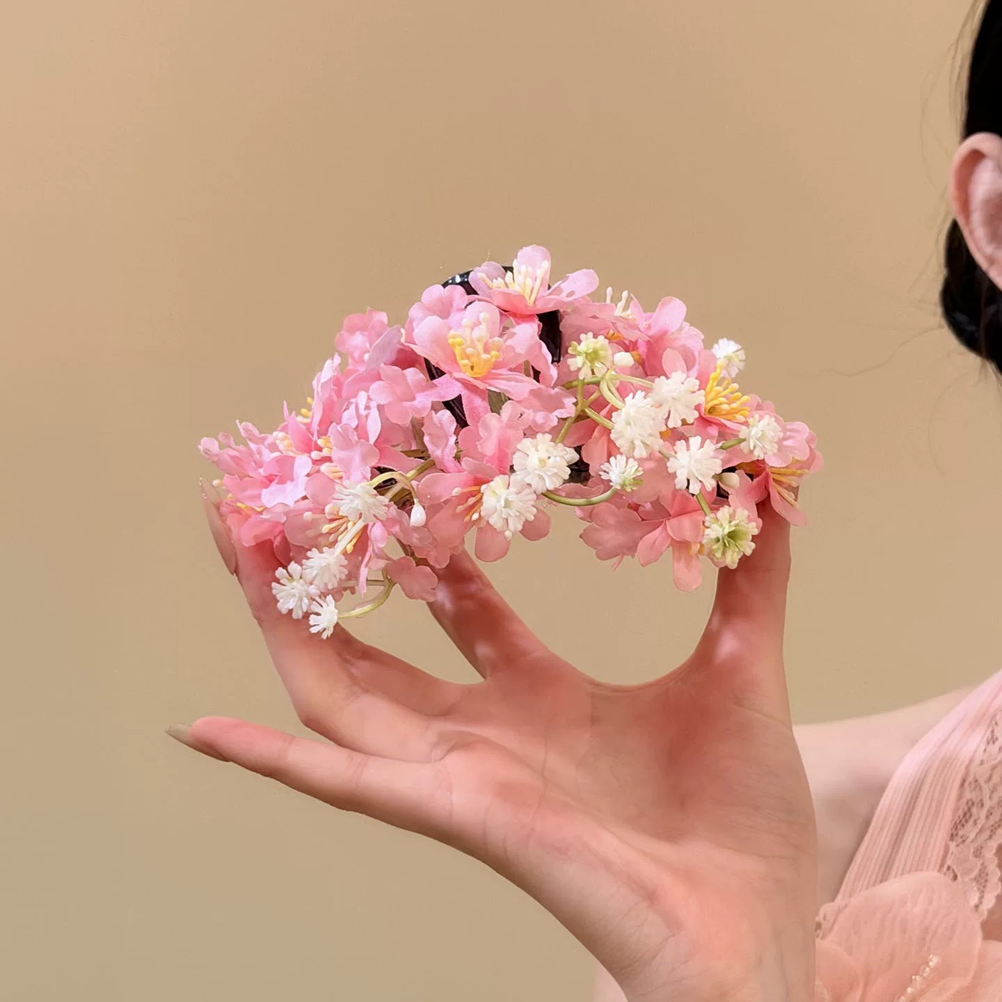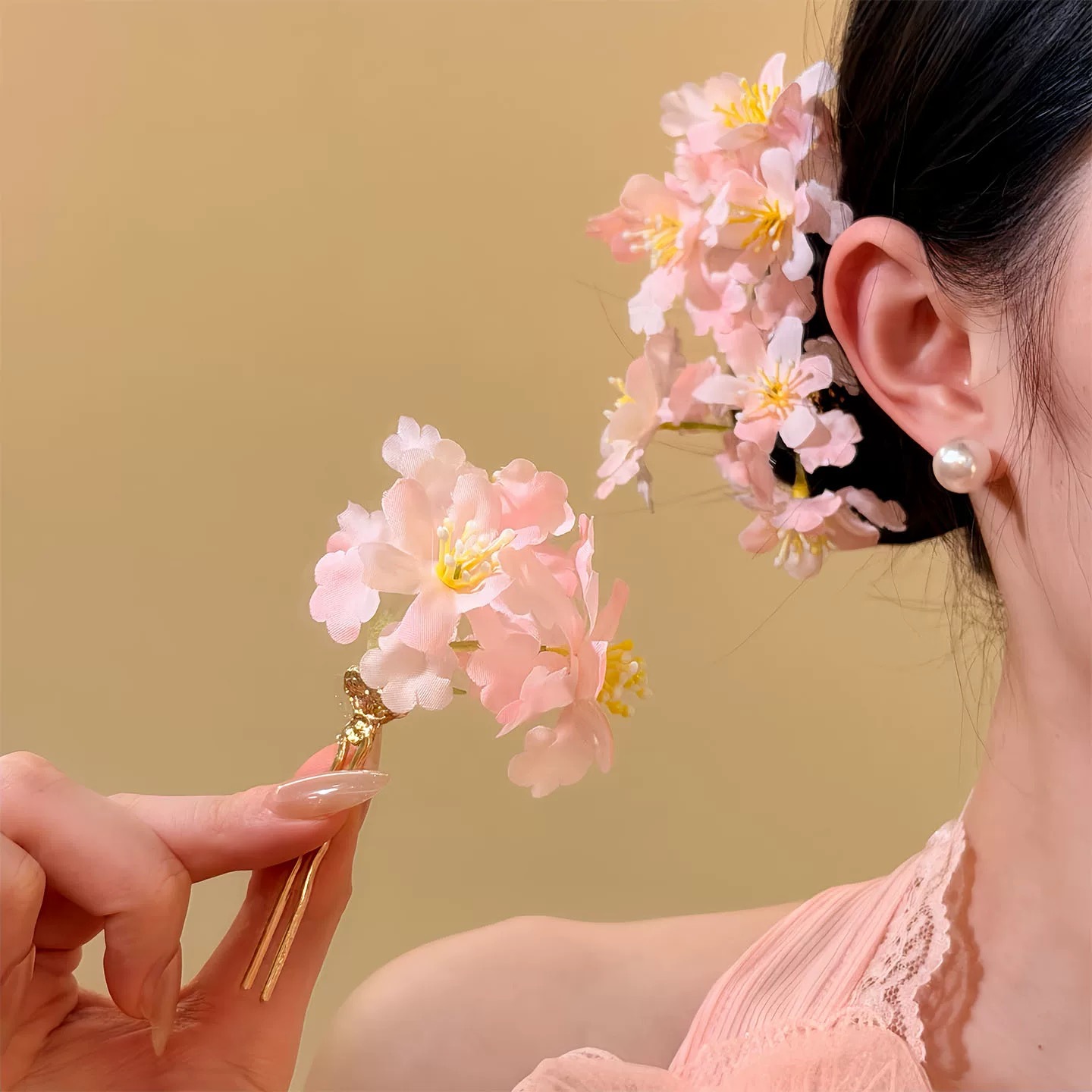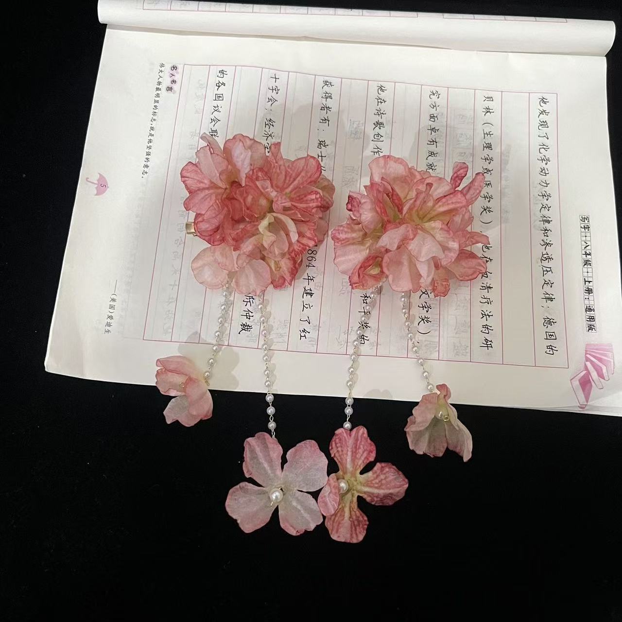 • 그라데이션 핑크와 화이트 벚꽃 머리핀 싱글