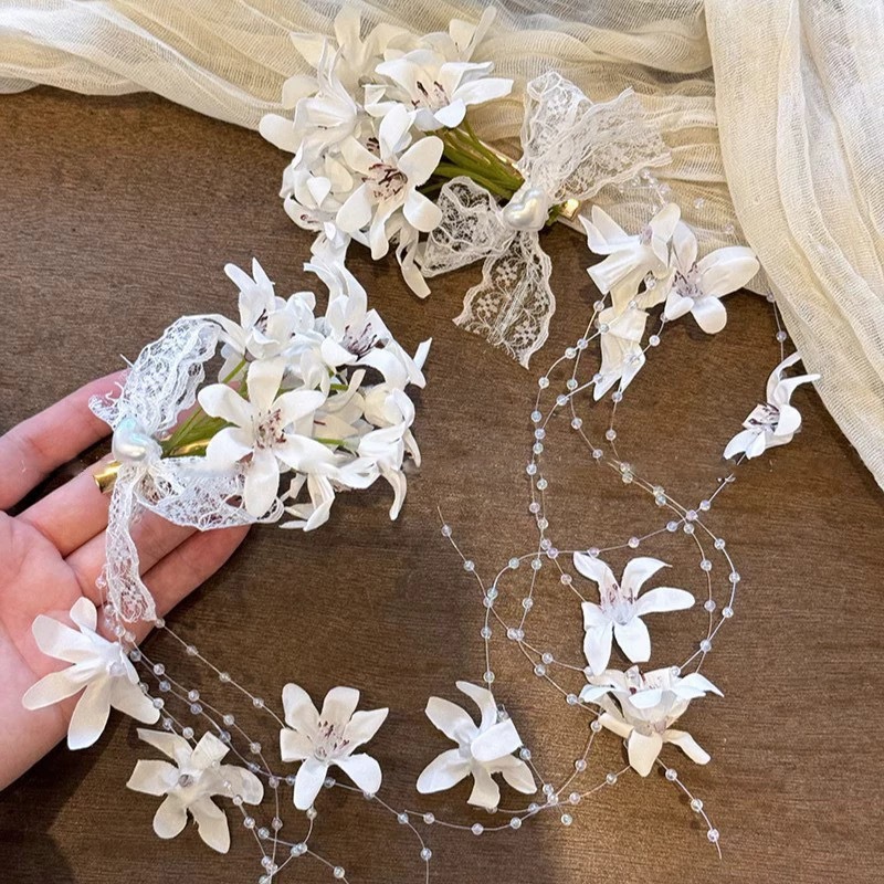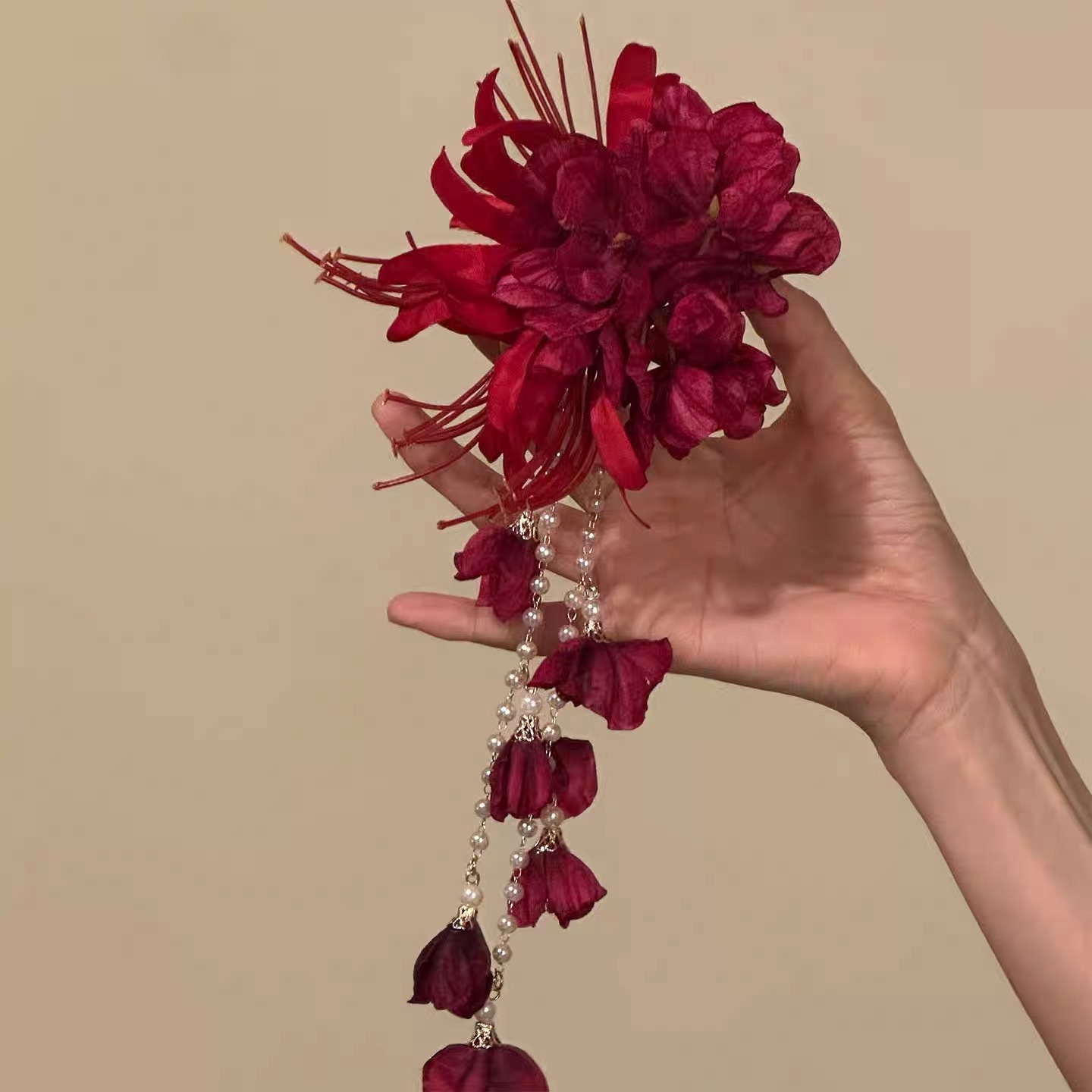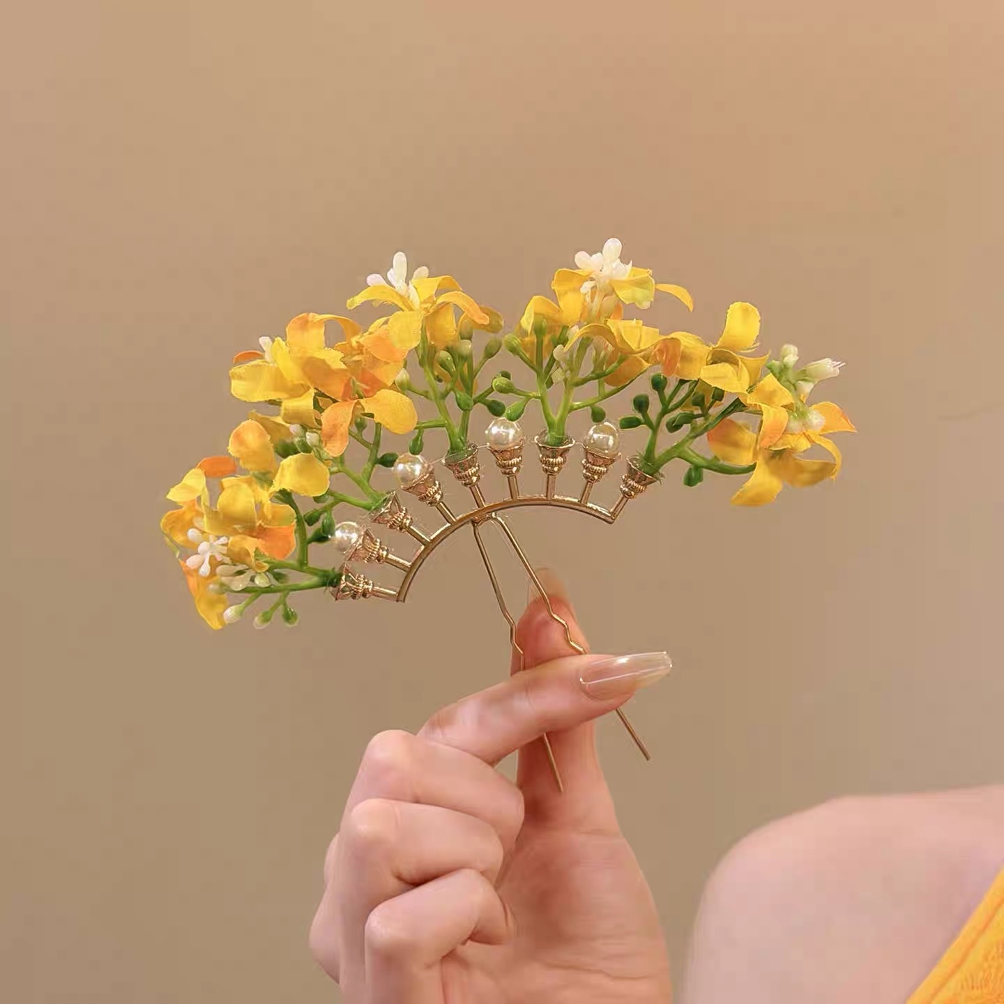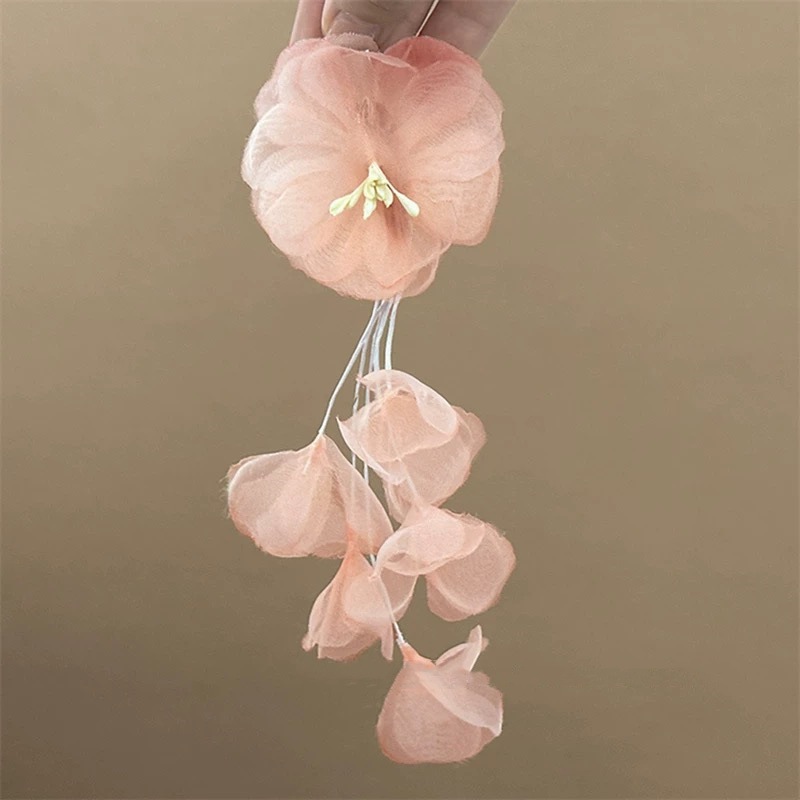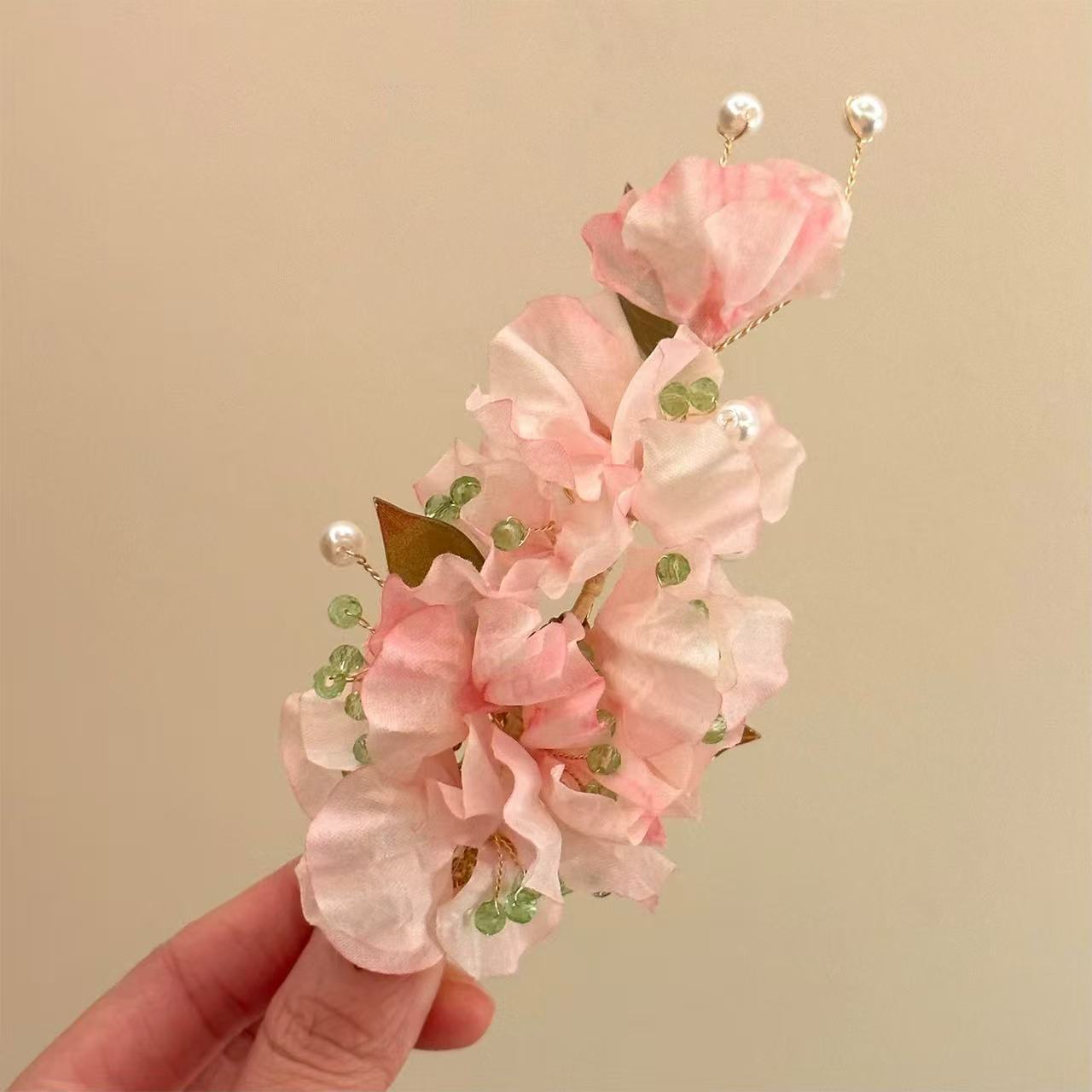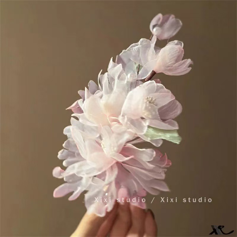 • 라이트 핑크 쉬폰 가지 꽃 머리핀