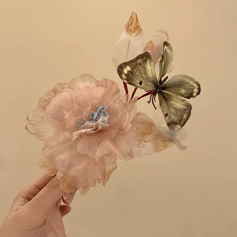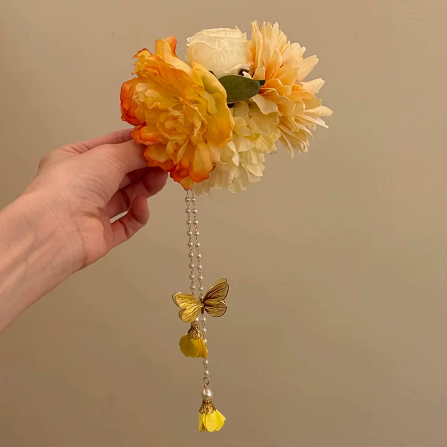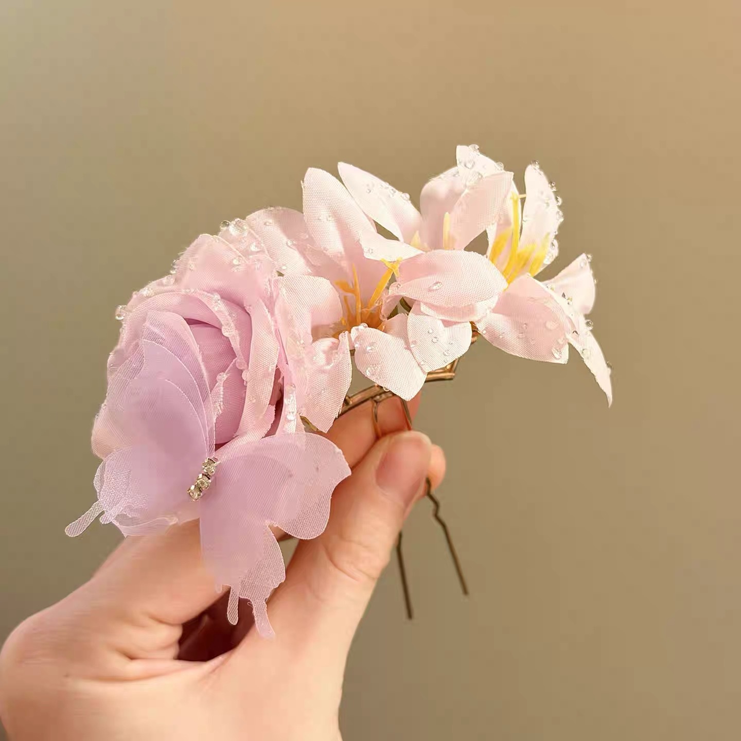 비가 떨어지는 꽃! 골동품 나비 꽃 머리핀! 새로운 중국 스타일 뜨거운 꽃 가장자리 클립 한푸 청삼 액세서리 여성 헤어