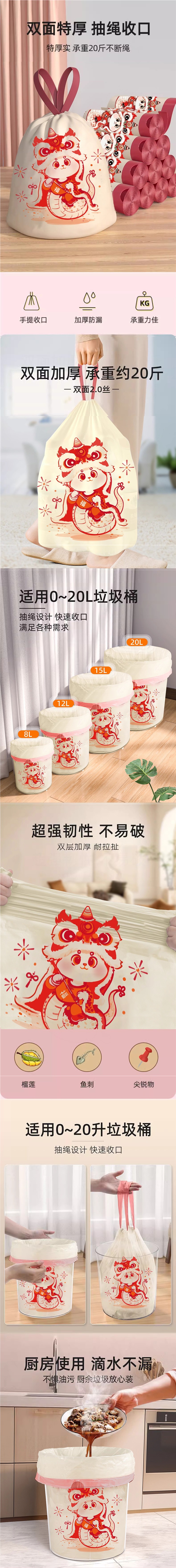 드로우 스트링 쓰레기 봉투를 깨기 어려운 새해 뱀 휴대용 두꺼운 대형 가정용 내구성 쓰레기 봉투