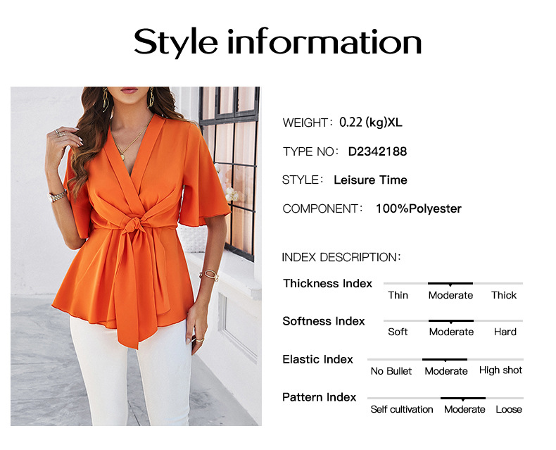 Kai Kuo 국경 유럽 및 미국 2025 봄과 여름 우아한 캐주얼 통근 V-넥 솔리드 컬러 레이스 업 슬림 핏 5 점 톱 셔츠스토어 가기