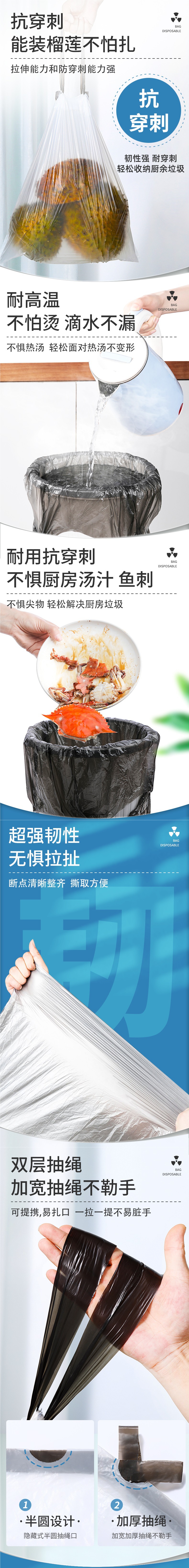 두꺼운 저장을 위한 두꺼운 끈 쓰레기 봉투 가정용 휴대용 검은 큰 부엌 비닐 봉투