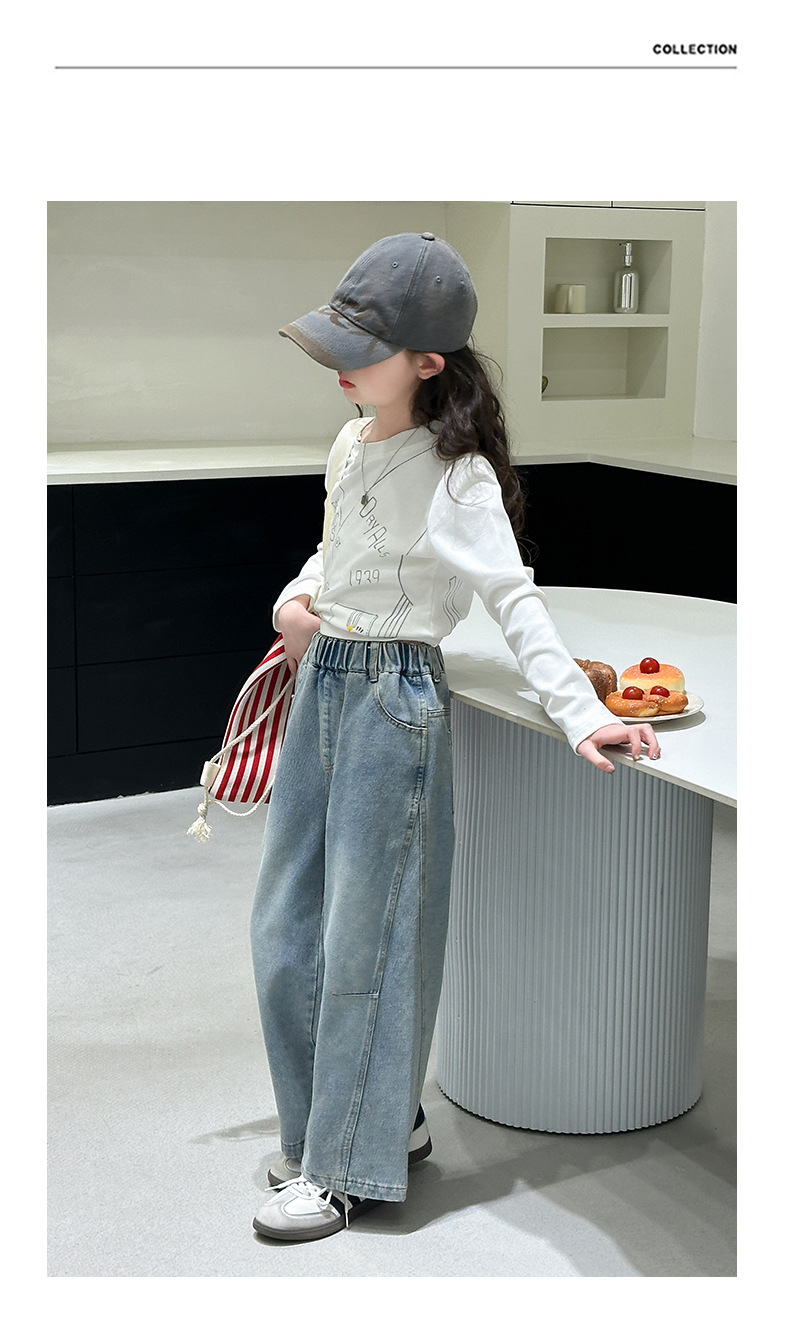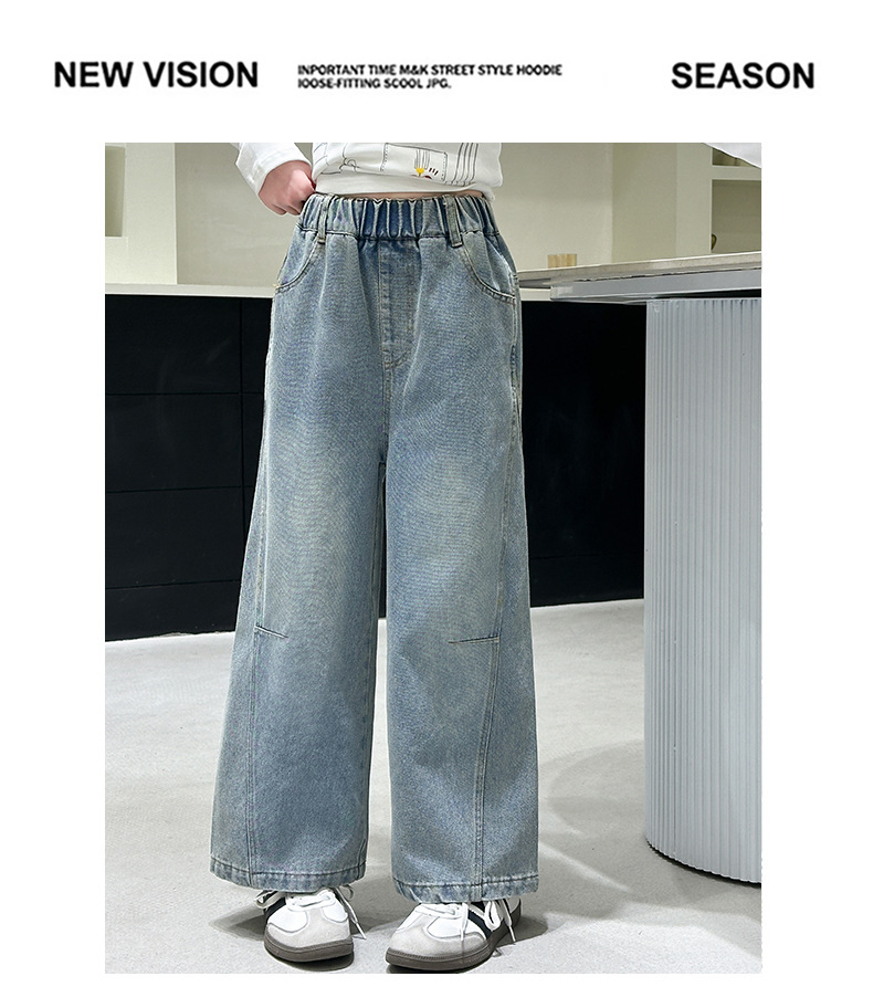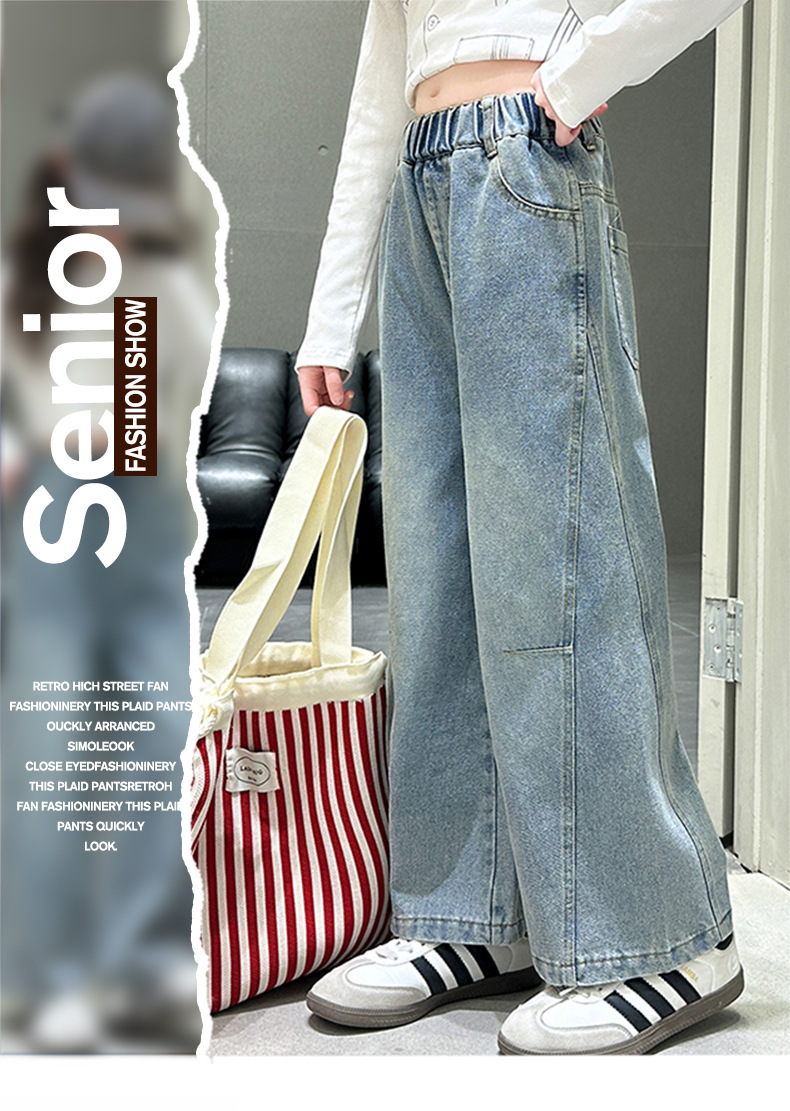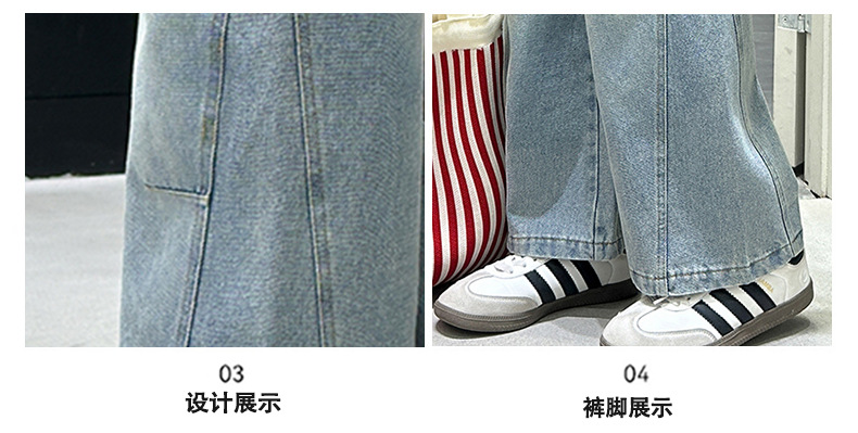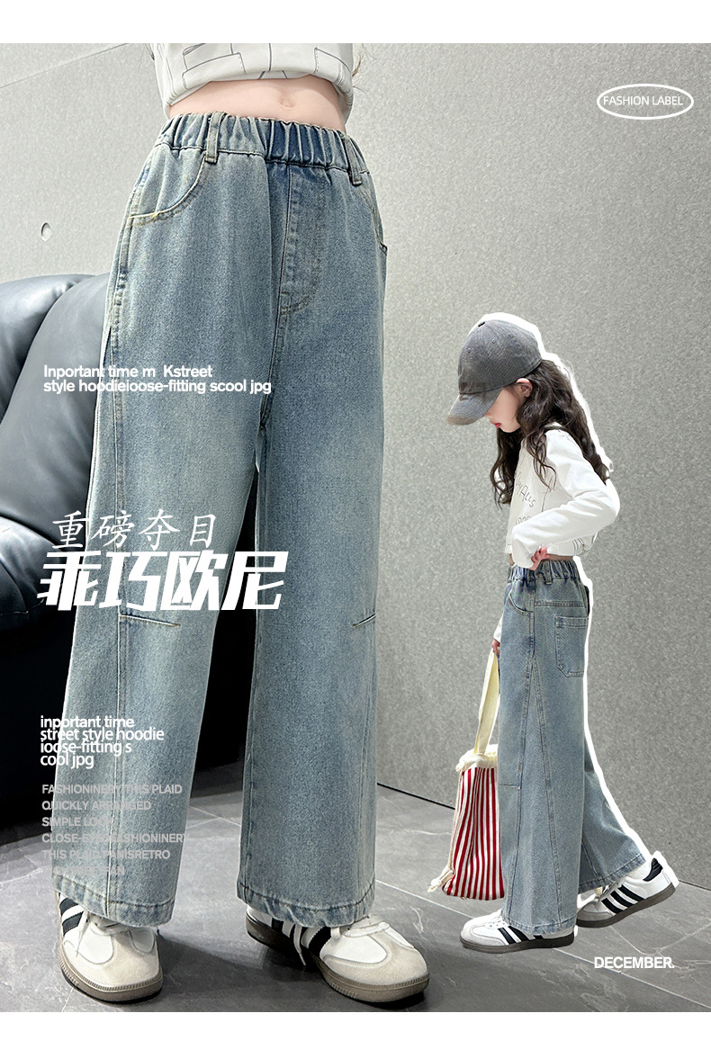 2025 봄 새 소녀의 넓은 다리 청바지 한국 스타일 서양식 느슨한 패셔너블 스트레이트 스티칭 바지스토어 가기