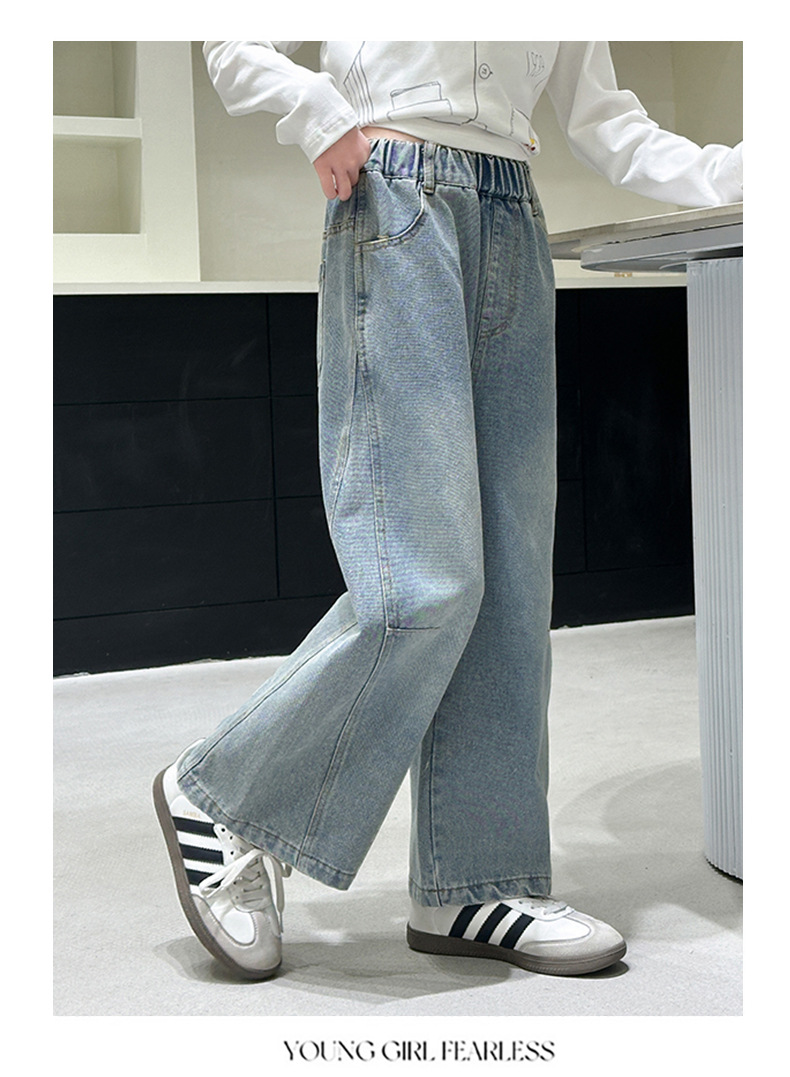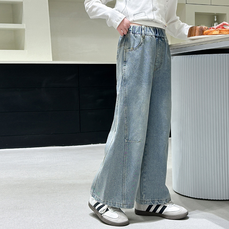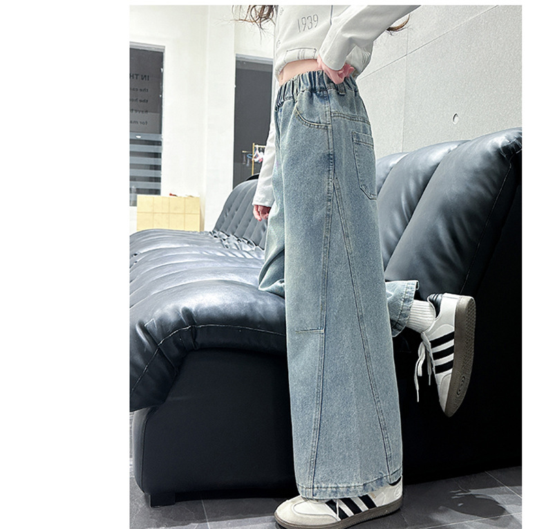 2025 봄 새 소녀의 넓은 다리 청바지 한국 스타일 서양식 느슨한 패셔너블 스트레이트 스티칭 바지