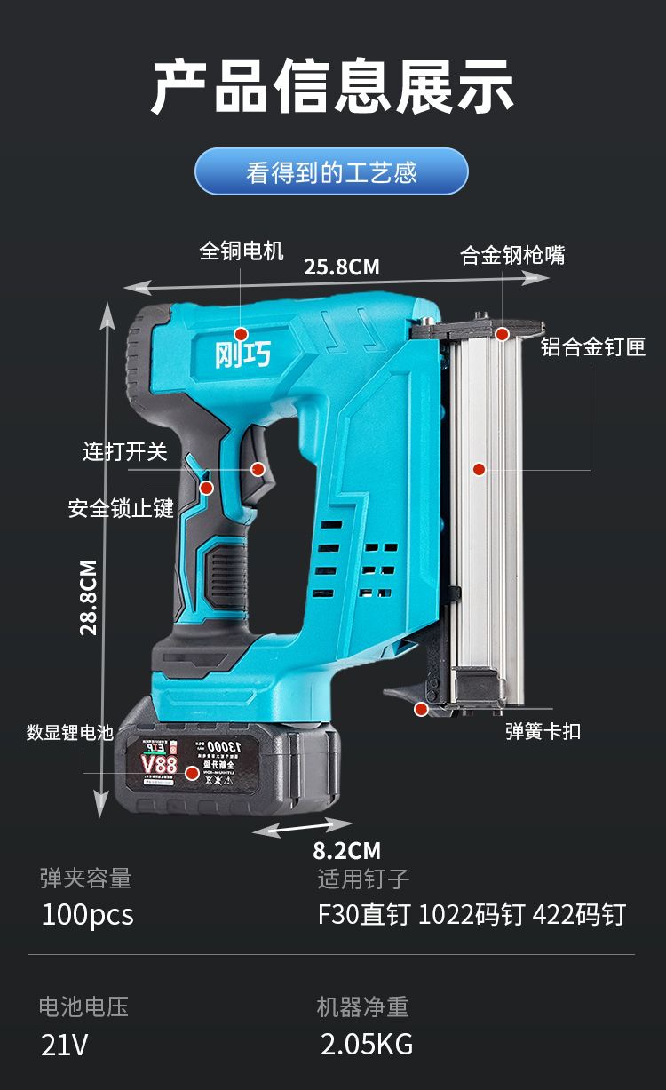 • F30 직선 못총_88v 배터리 1개 및 플라스틱 상자 1개