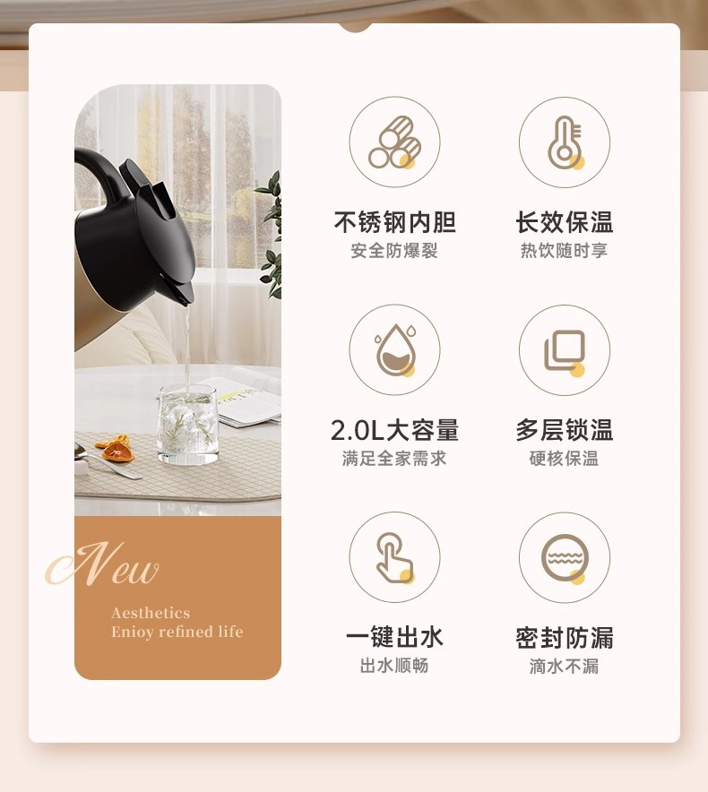 온수 주전자 304 스테인리스 내부 보온병 기숙사 사무실 가정용 보온병 대용량 온수병스토어 가기