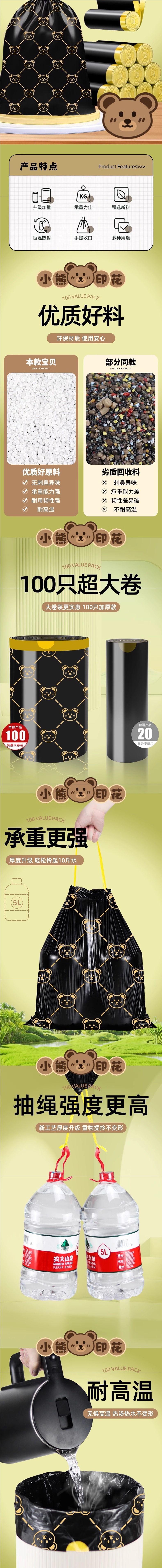 블랙 대형 롤 서랍 쓰레기 봉투 가정용 휴대용 두꺼운 인쇄 대형 주방 검은 비닐 봉지 사용