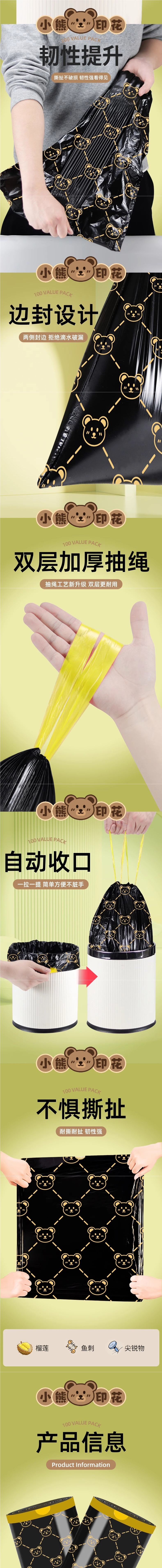 블랙 대형 롤 서랍 쓰레기 봉투 가정용 휴대용 두꺼운 인쇄 대형 주방 검은 비닐 봉지 사용스토어 가기