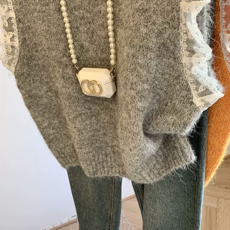 독특한 한국 스타일 레이스 바느질 니트 조끼 여성의 가을과 겨울 새로운 디자인 감각은 민소매 탑