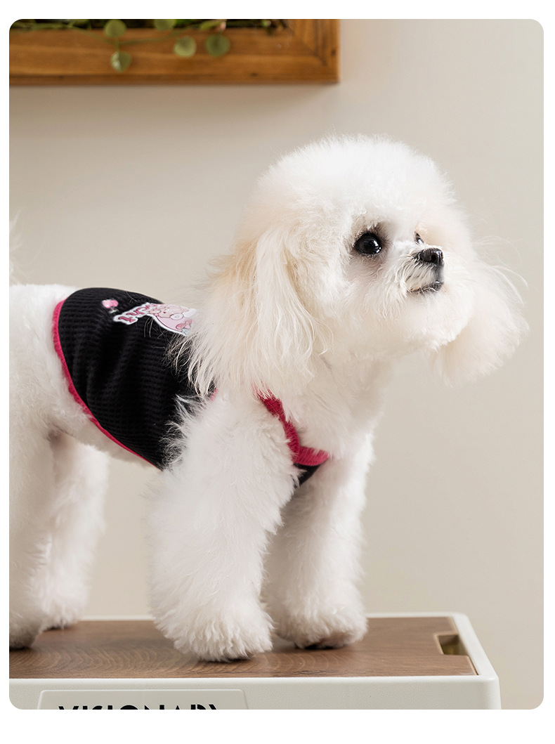 봄과 여름 25 새로운 사랑 와플 견인 스트랩 개 두 다리 옷 만화 얇은 조끼 애완 동물 옷