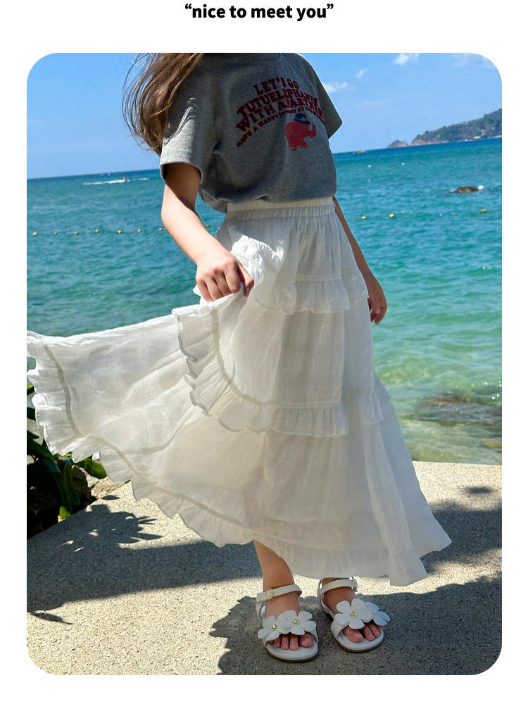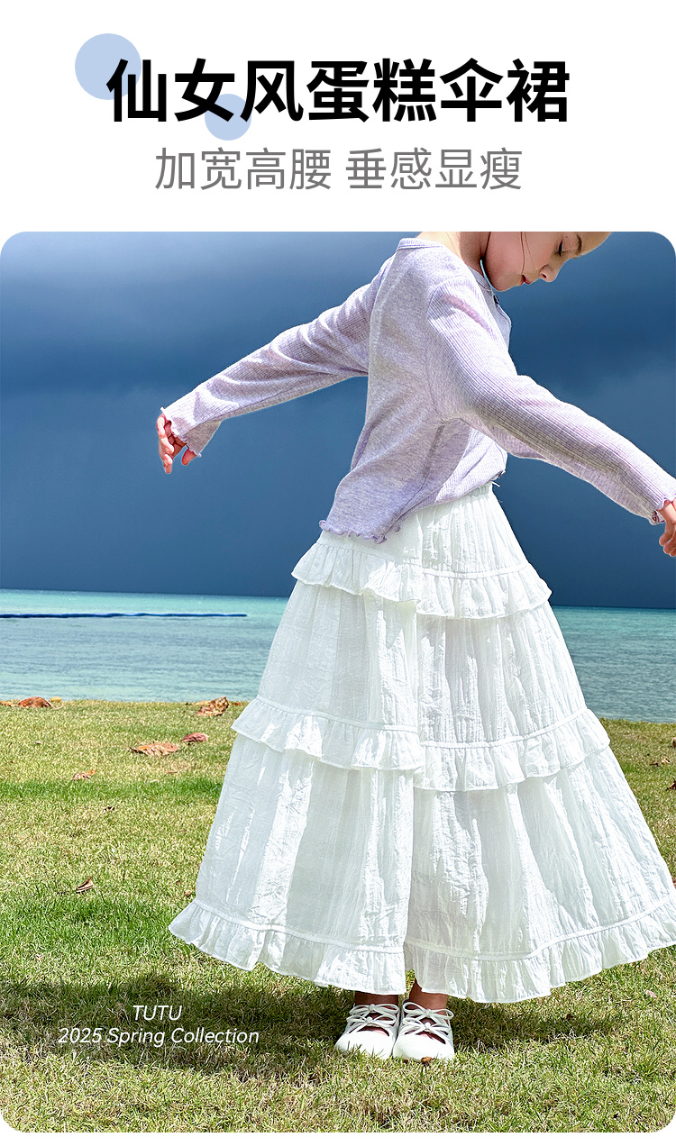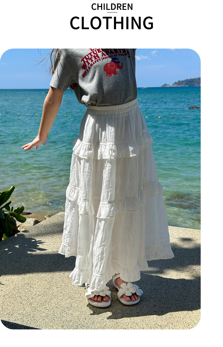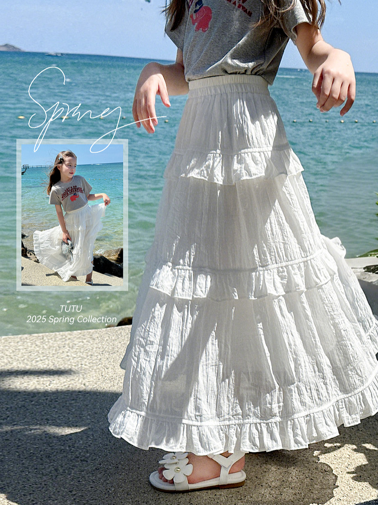 여자 치마 2025 봄과 여름 새로운 한국 스타일 아동복 아기 캐주얼 긴 치마 요정 케이크 스커트 트렌디스토어 가기